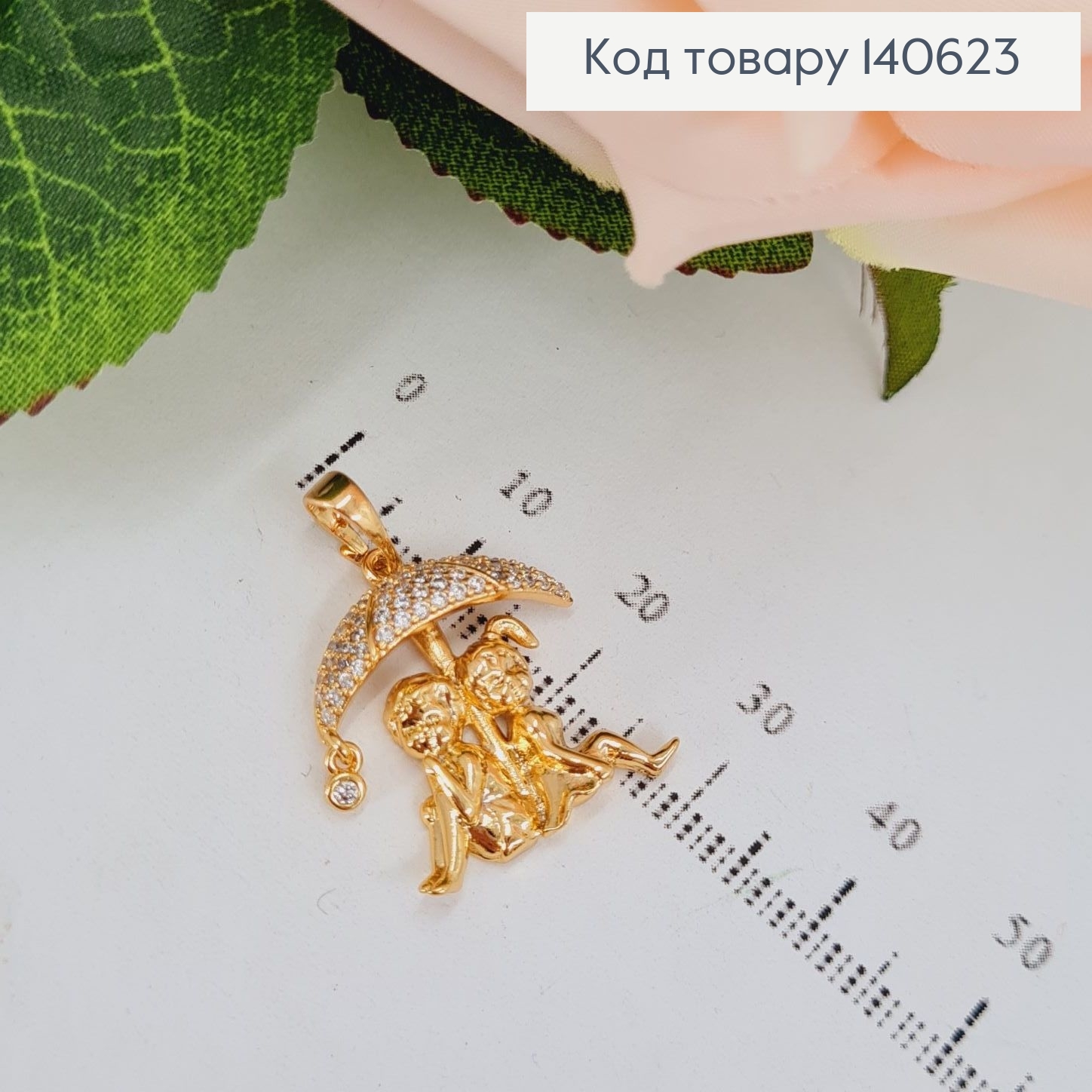 Кулон Хлопчик і Дівчинка під парасолькою в камінцях, 3*2см, Xuping 18К