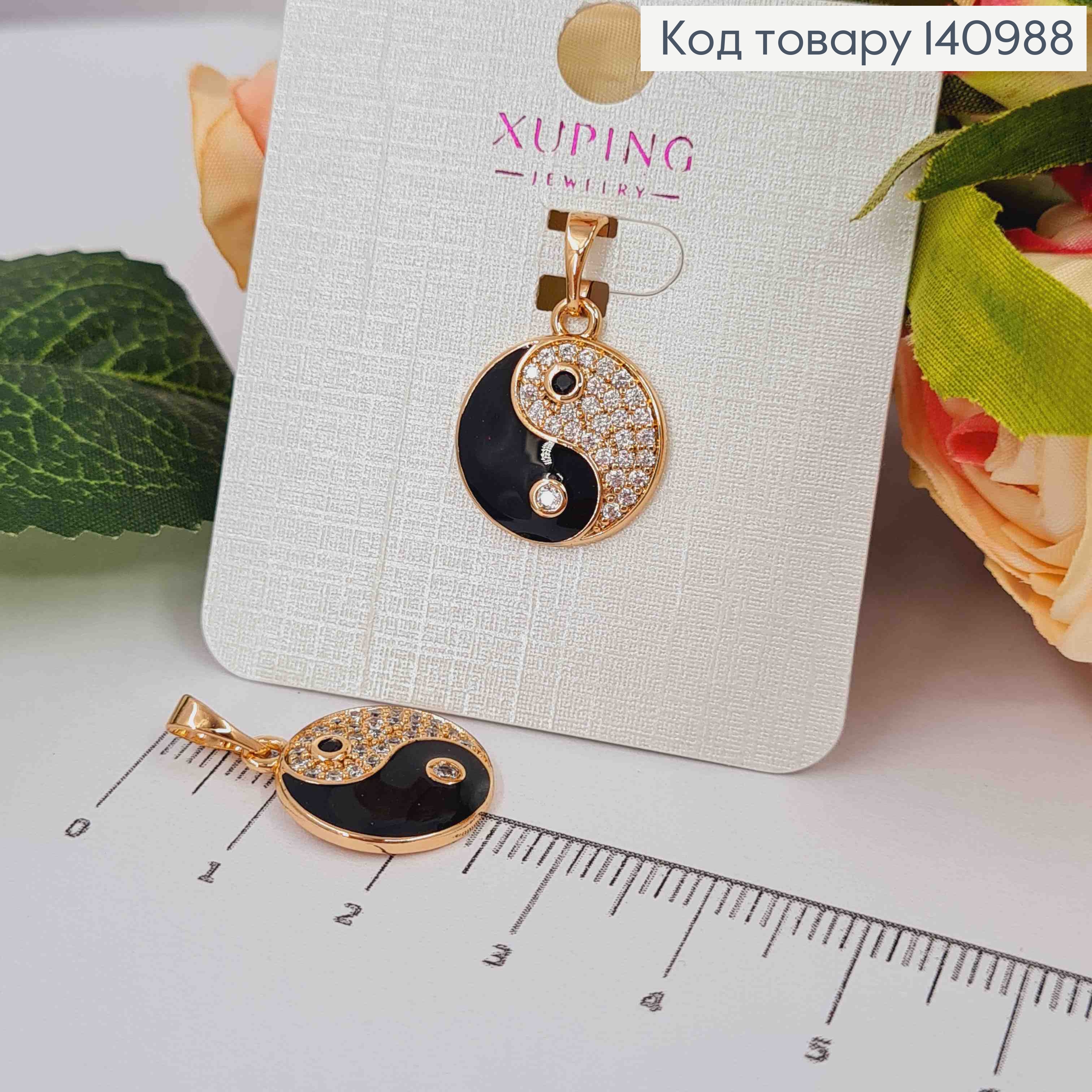 Кулон "Інь-Янь" прикрашений Блискучими камінцями, 1,5см, Xuping 18K