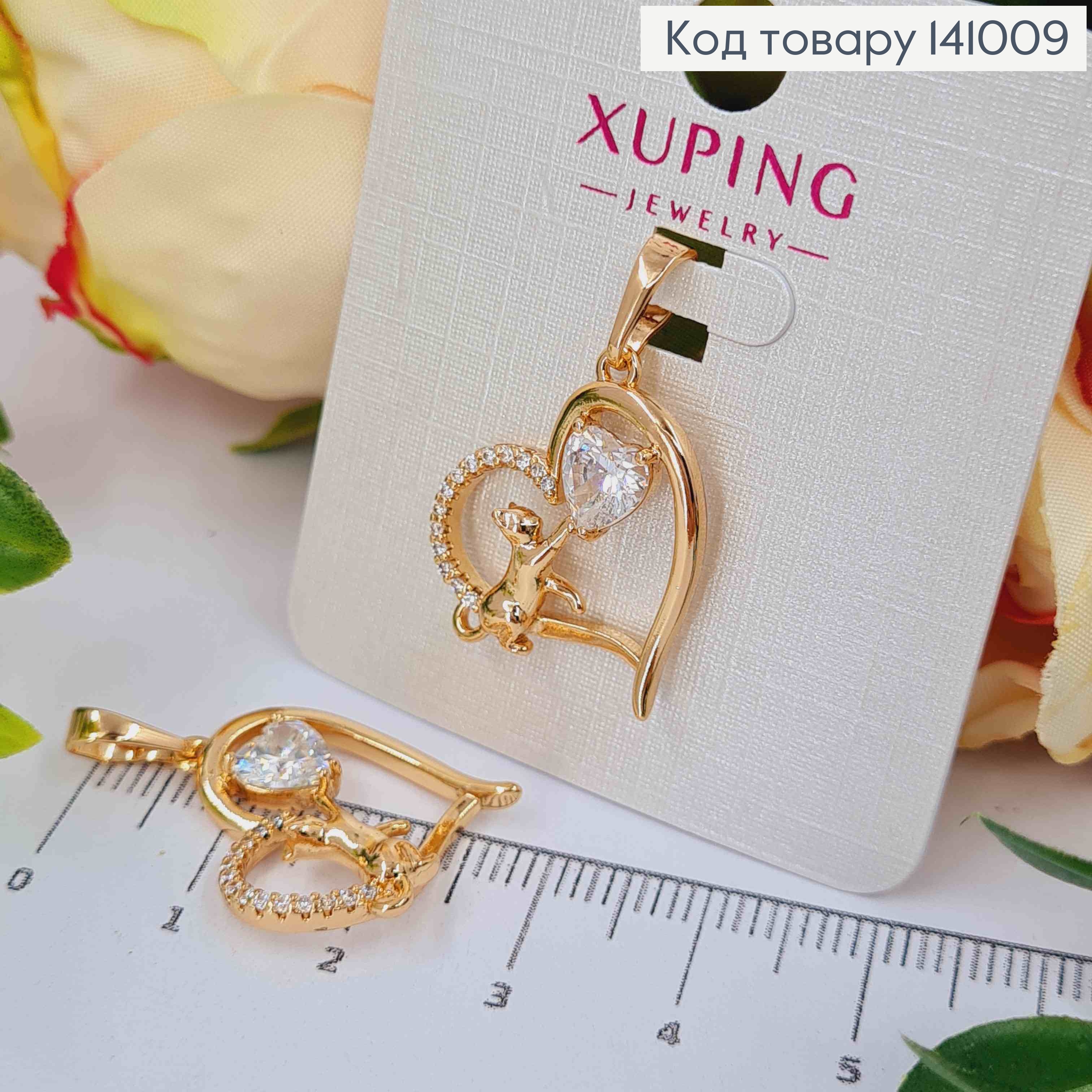 Кулон "Кошеня в Серці" з Яскравими камінцями, 2,2см, Xuping 18K