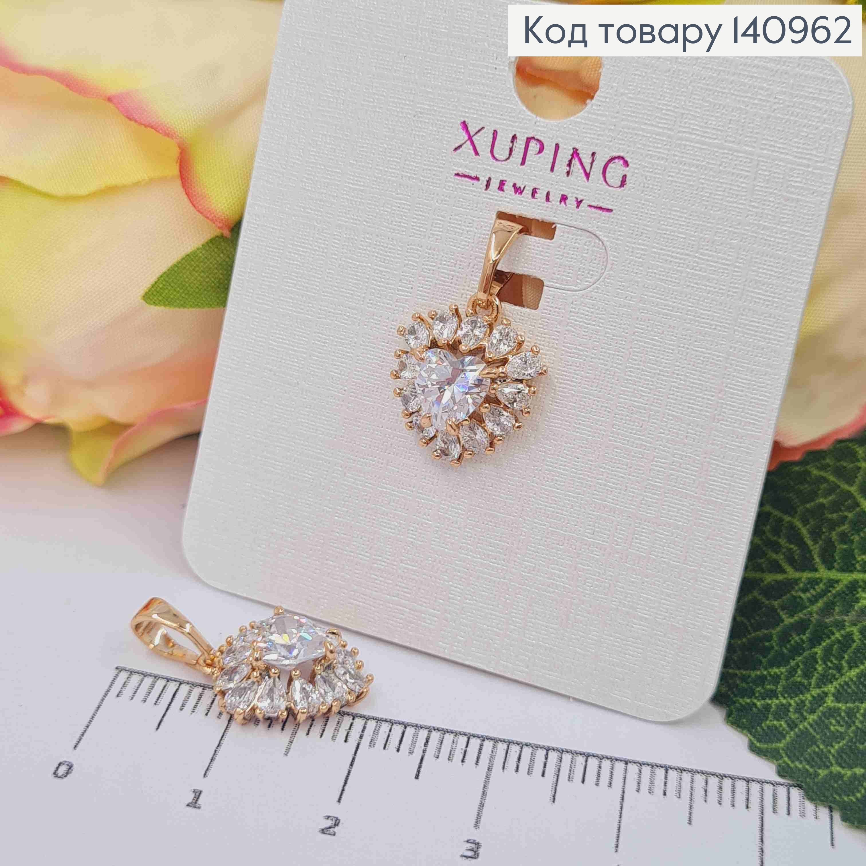 Кулон Серце з камінчка в оправі з камінців, 1,4см, Xuping 18K