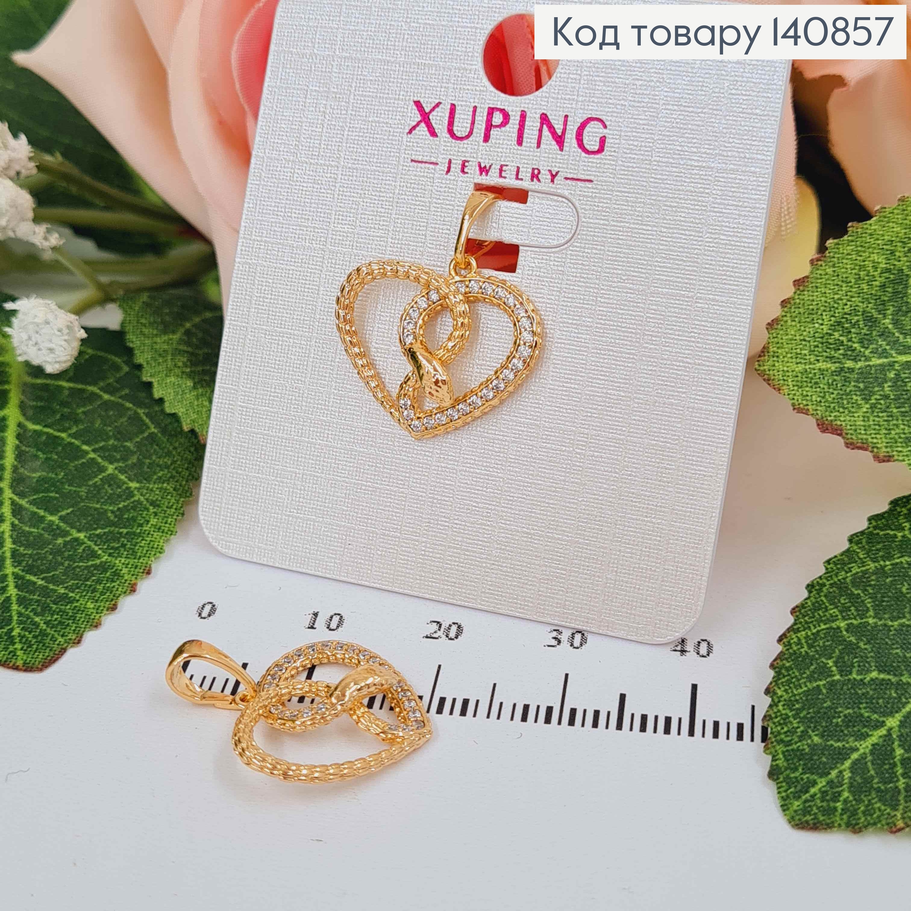 Кулон Сердечко з двома змійками та камінцями, 1,6см, Xuping 18K