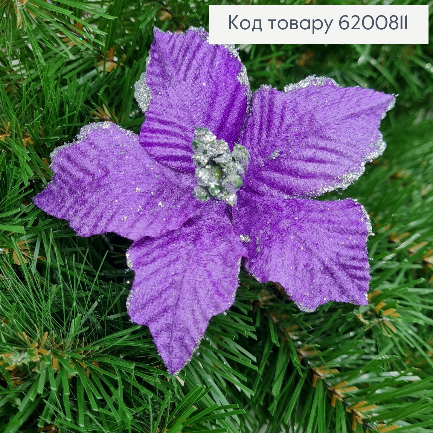 Квітка Різдвяник фіолетовий глітерна д.13 см на металевоме стержні