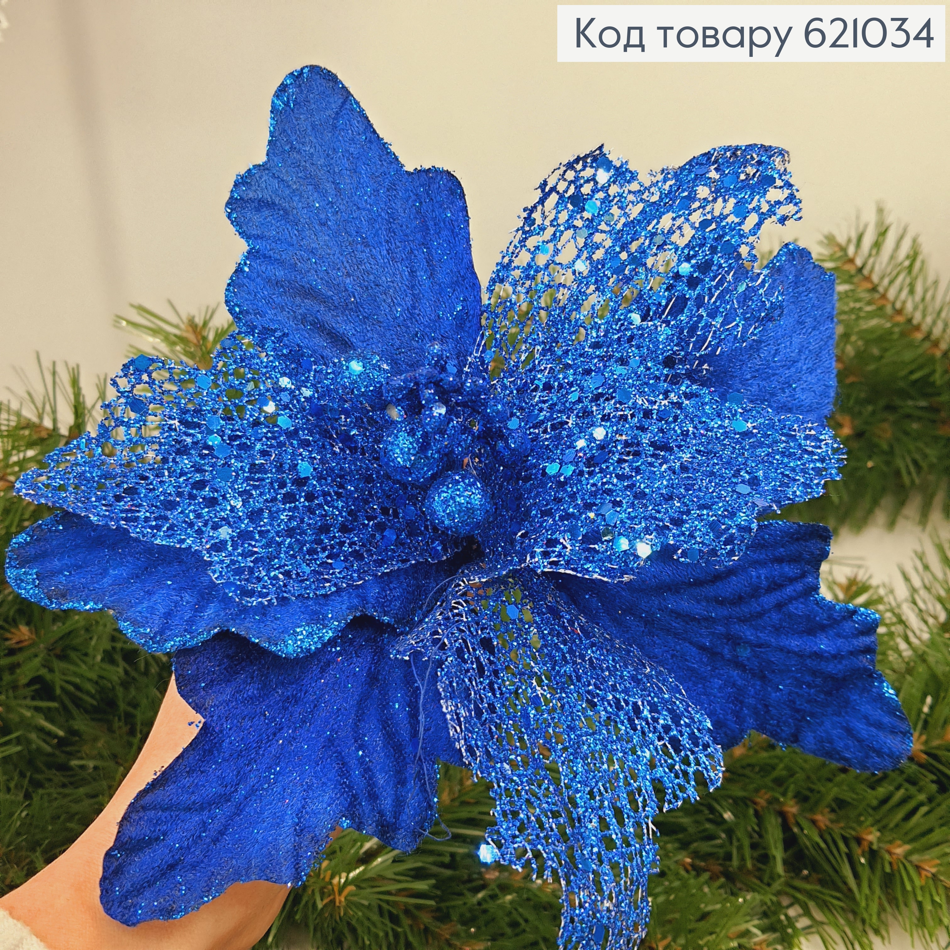 Квітка Різдвяник металевоме стержні д. 26 см бархат синій блиск