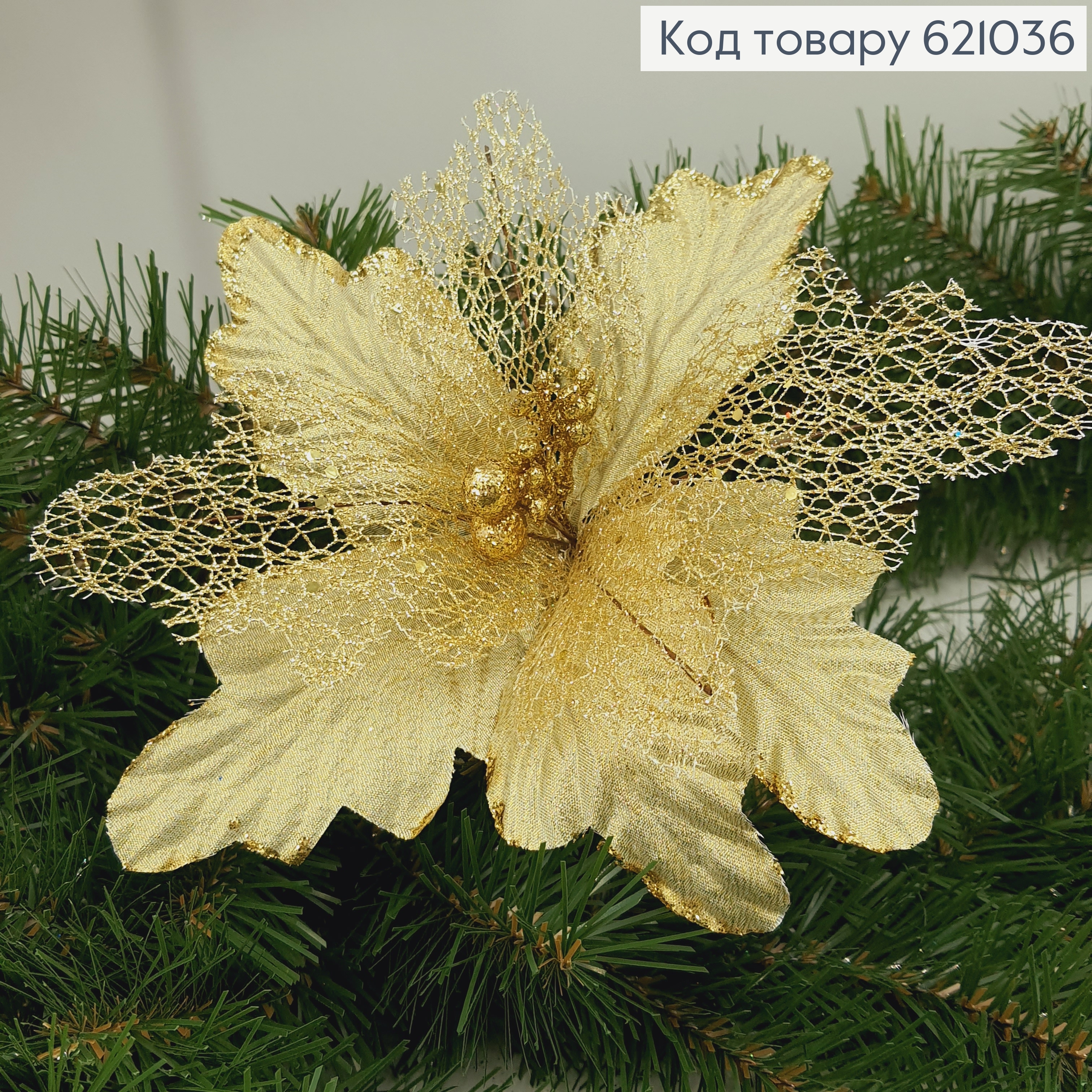 Квітка Різдвяник металевоме стержні д. 26 см золото блиск