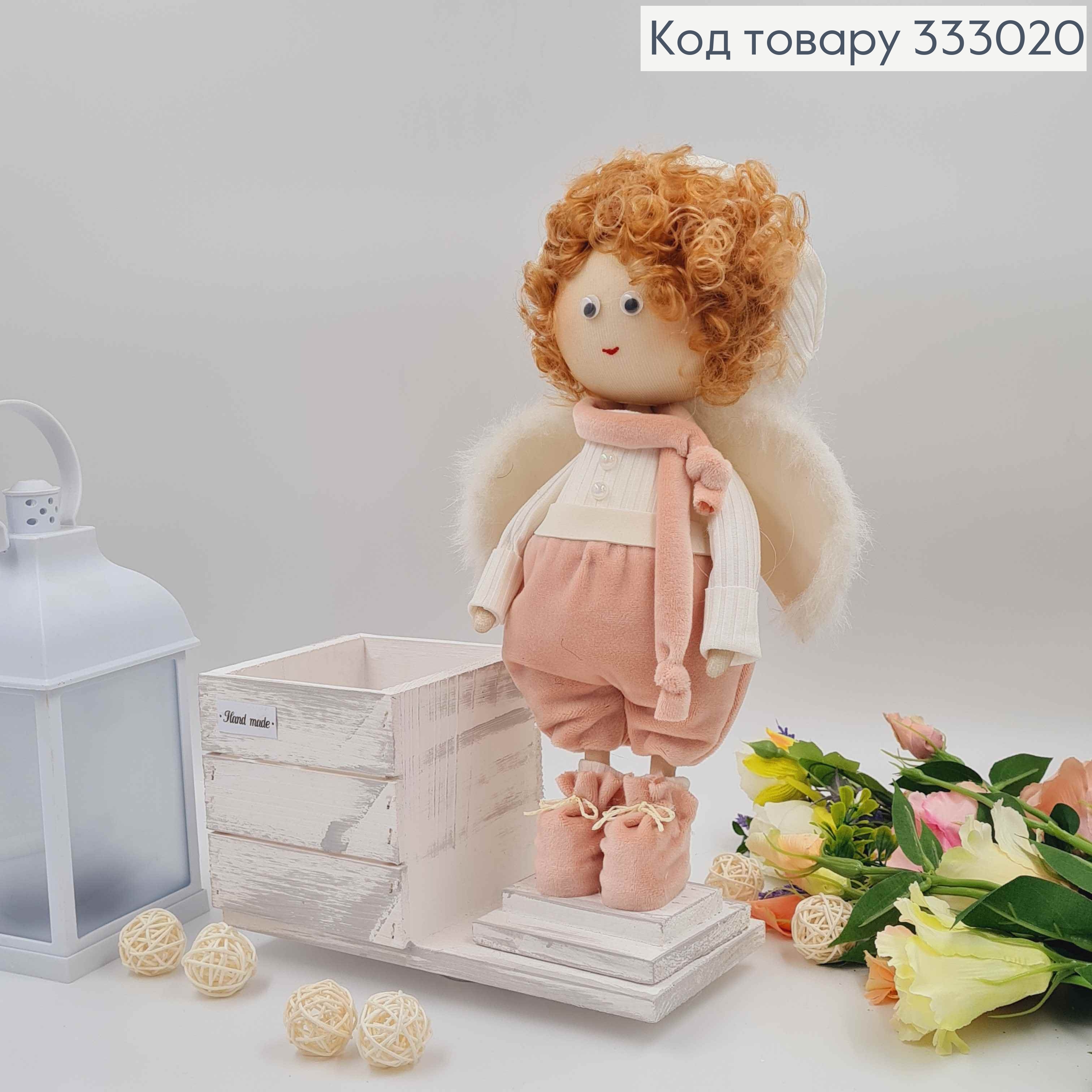 Лялька АМУРЧИК (32см) в пудрових штанцях з дерев"яним кашпо (11*11см) см,ручна робота, Україна