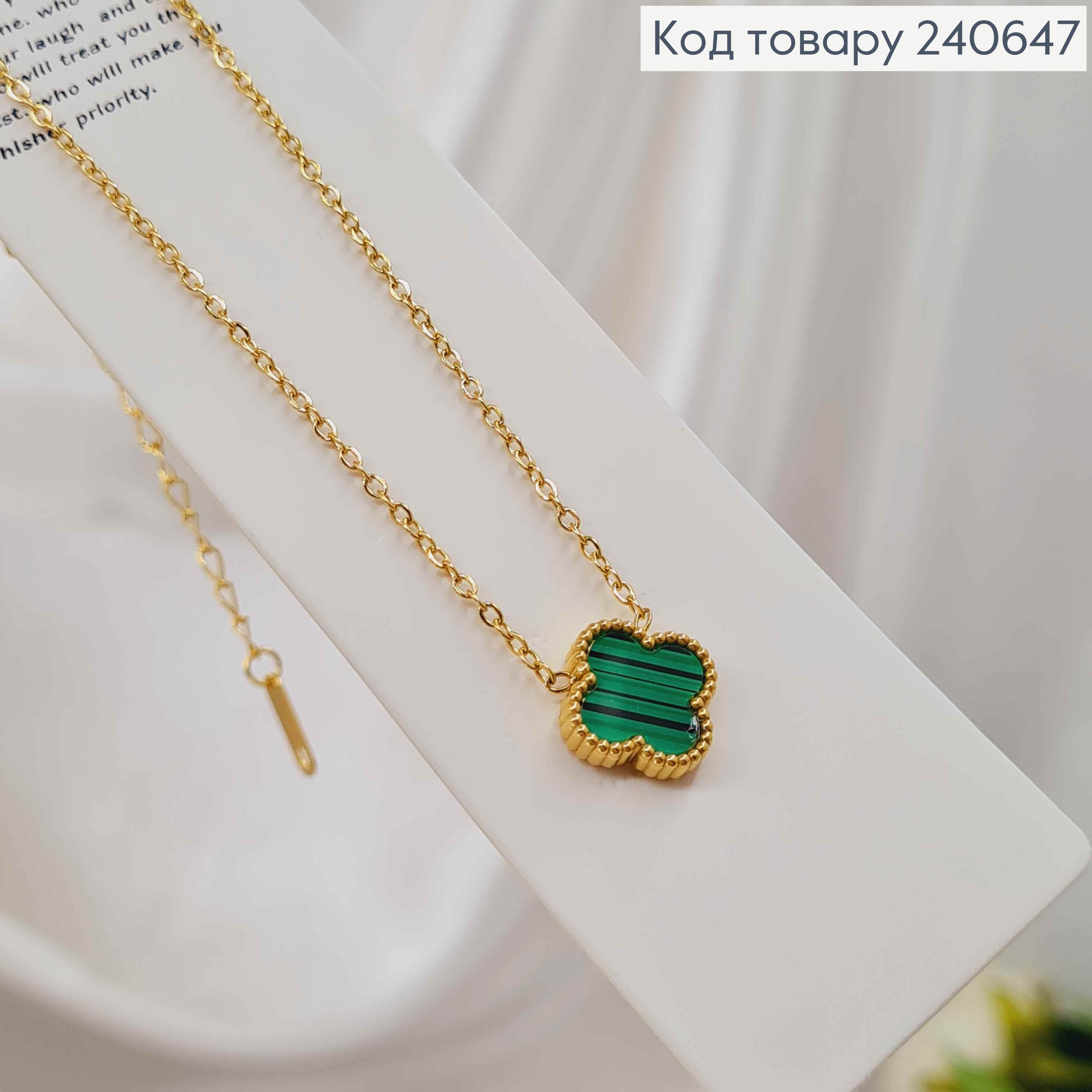 Ланцюжок лимонного кольору, "Van Cleef" з Зеленою емаллю, 43+6см, сталь Stainless Steel