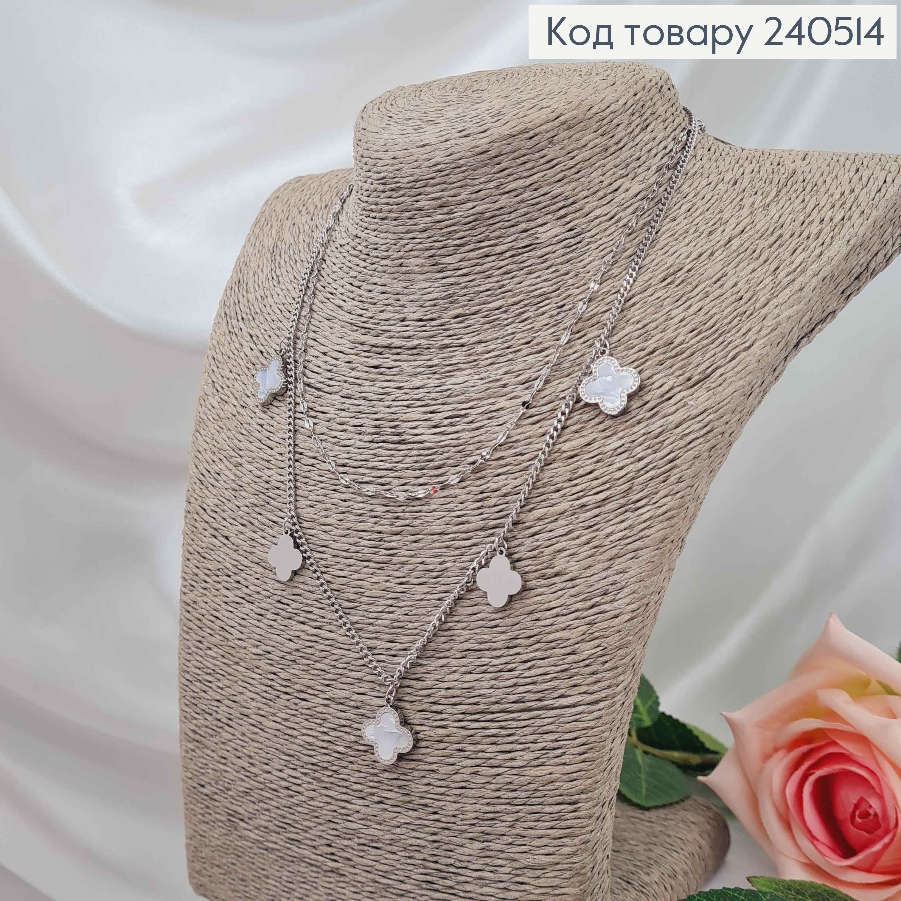 Ланцюжок срібного кольору, з підвіскою Van Cleef з Перламутровою емаллю,44+5см сталь Stainless Steel 240756 фото