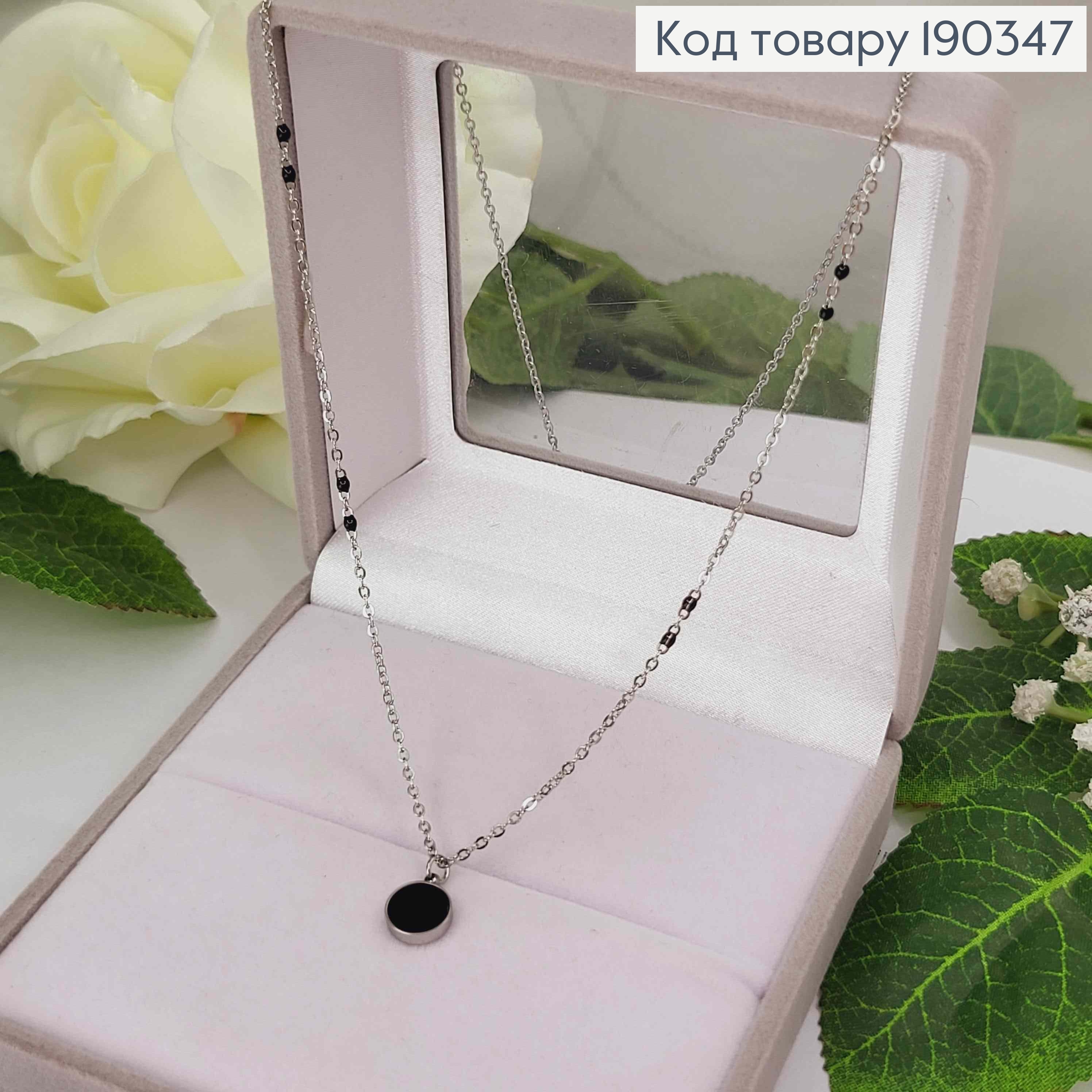 Ланцюжок родований з чорними бусинками, з круглою підвіскою з чорною емаллю, 45+5см, Stainlles Still