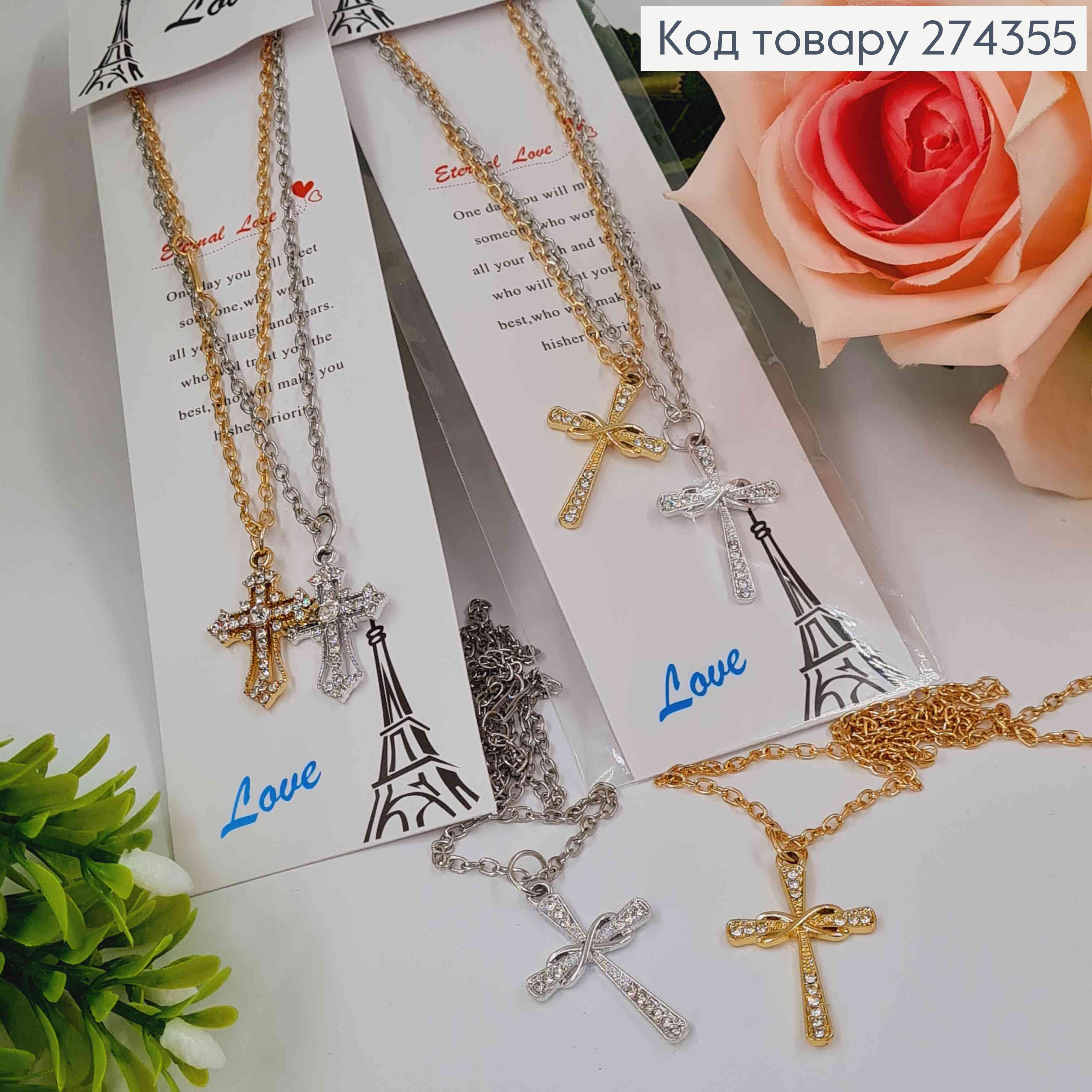 Ланцюжок, срібного і золотого кольору, 2шт. Хрестики в камінцях, BEST FRIENDS, в асорт.