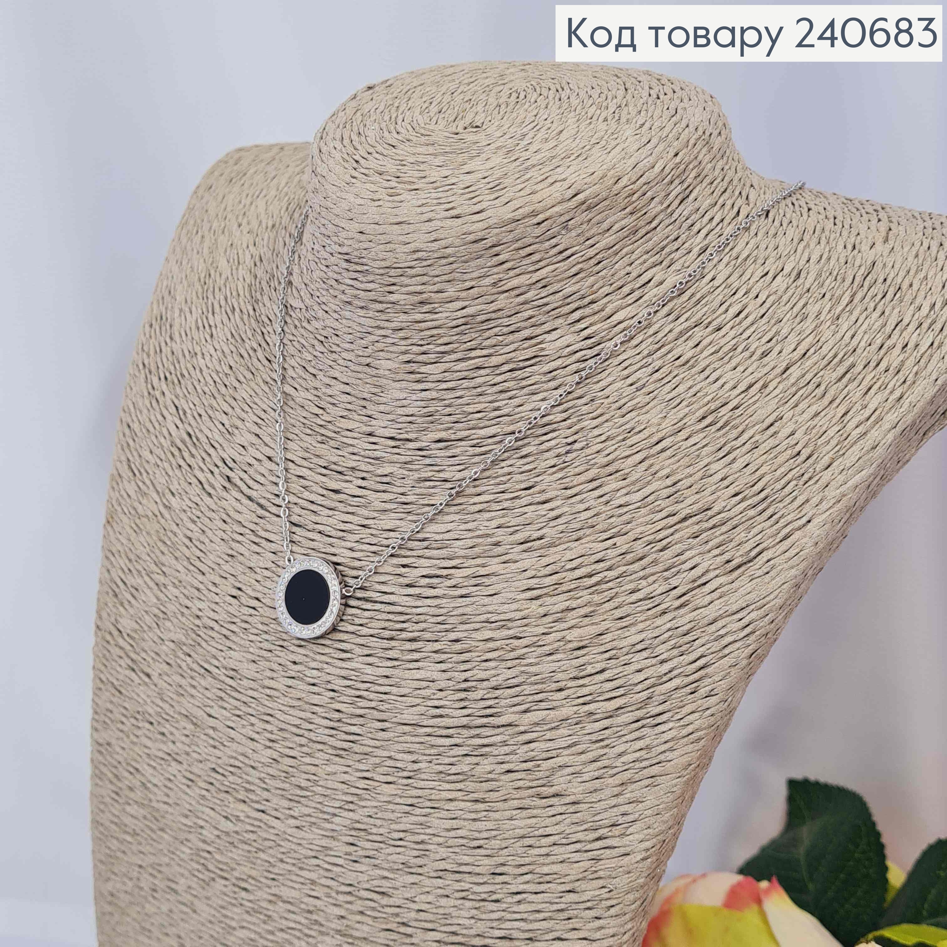 Ланцюжок срібного кольору з підвіскою Коло з Чорною емаллю(1,5см), 45+5см, сталь Stainless Steel