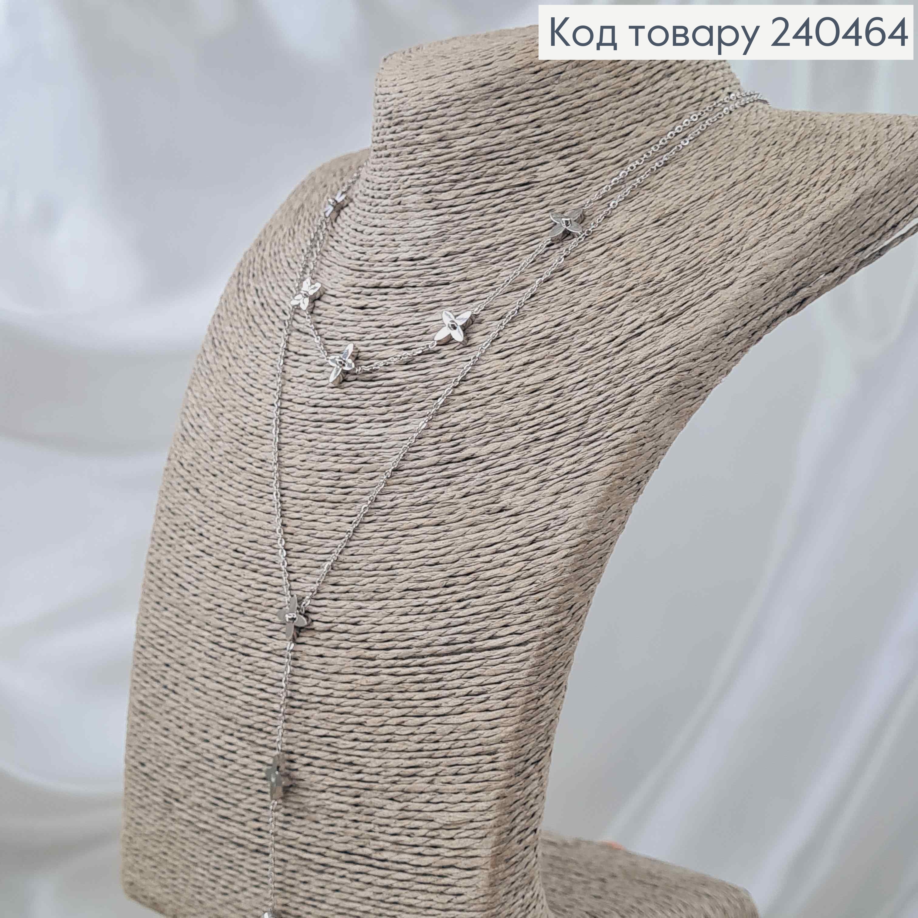 Ланцюжок подвйний срібн. кольору, з підвіскою "Van Cleef" та кульками, 40+5см, сталь Stainless Steel