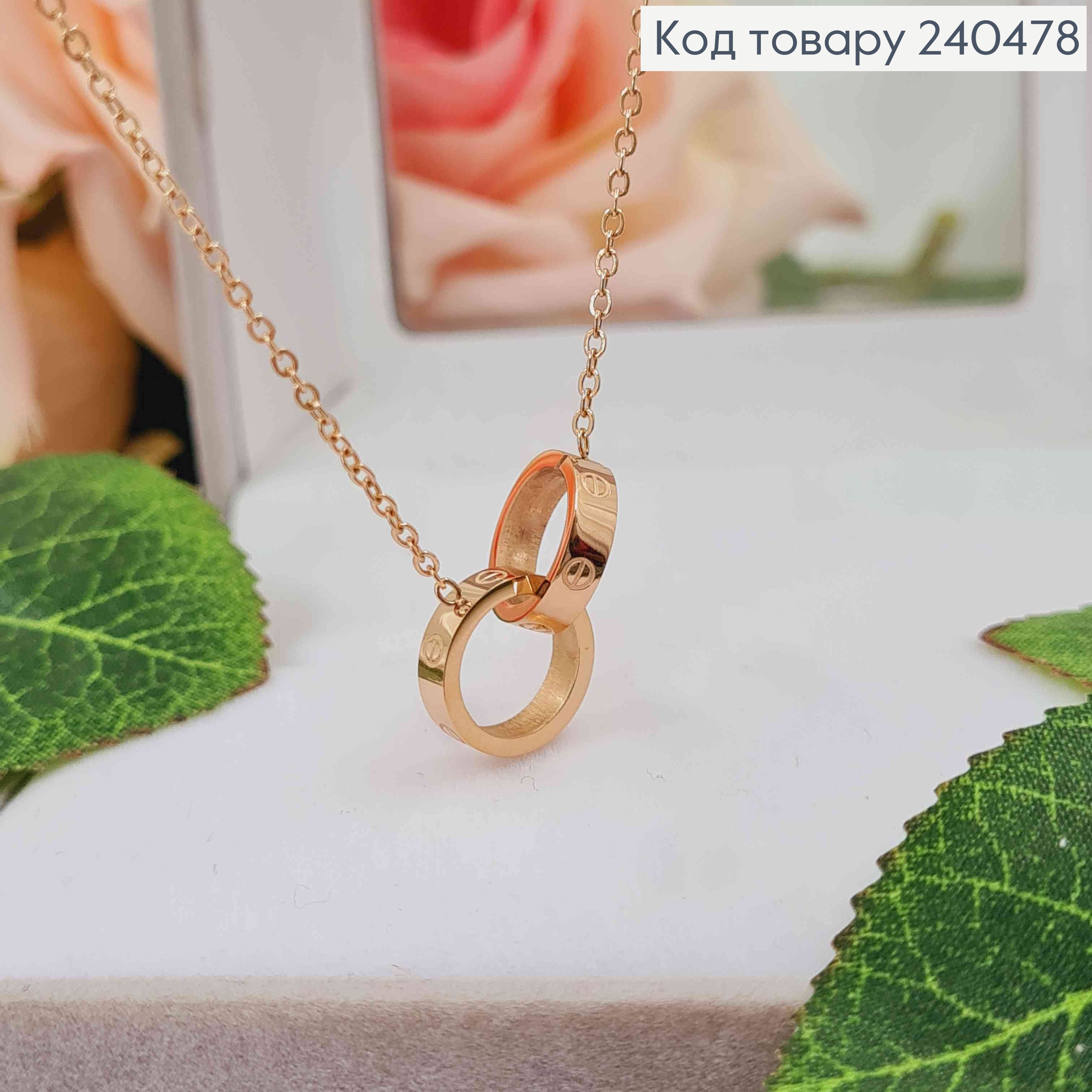 Ланцюжок, золотого кольору, з підвісками двома колечками Картьє, 42+5см, сталь Stainless Steel