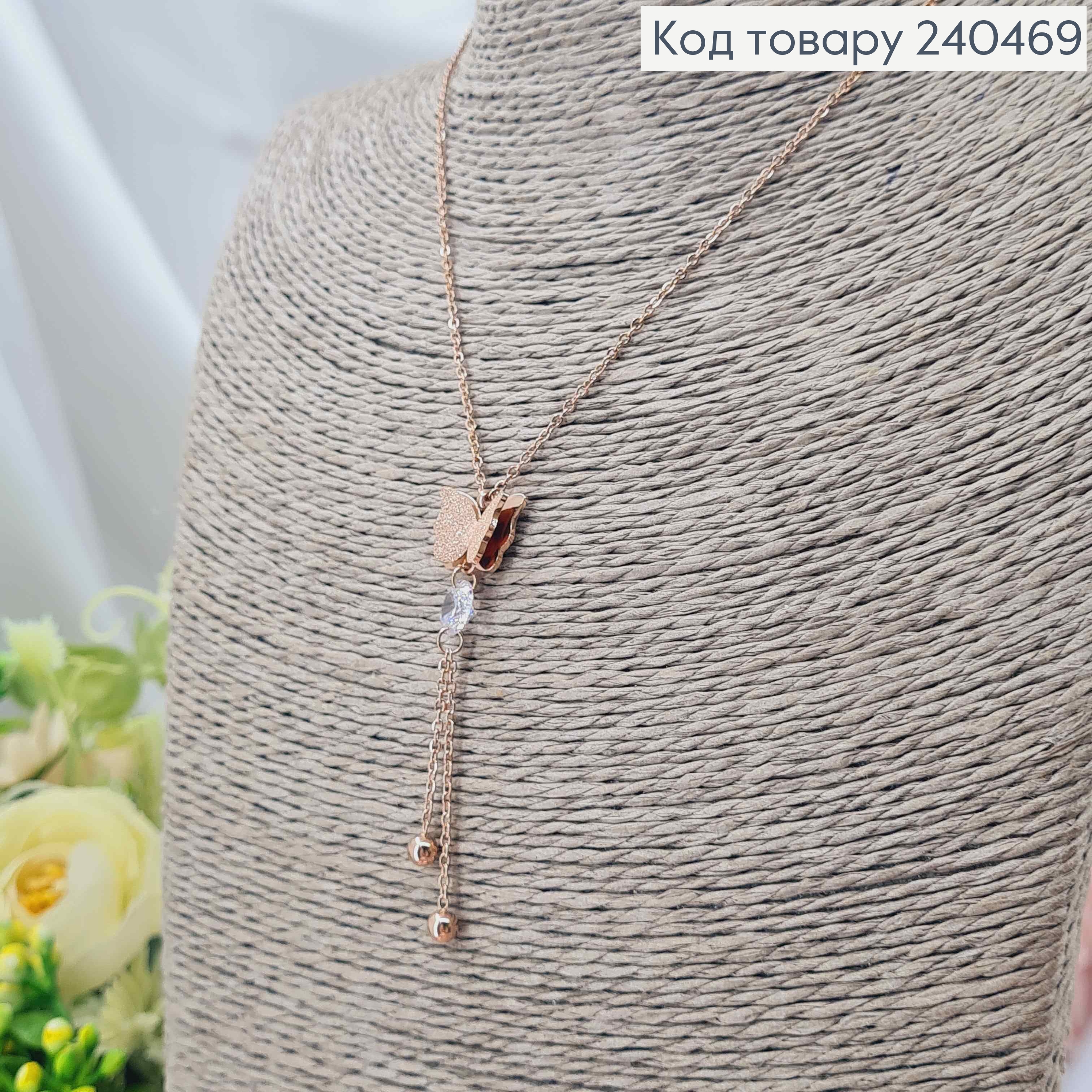 Ланцюжок, золотого кольору, з підвіскою Метеликом з камінчиком, 40+5см, сталь Stainless Steel