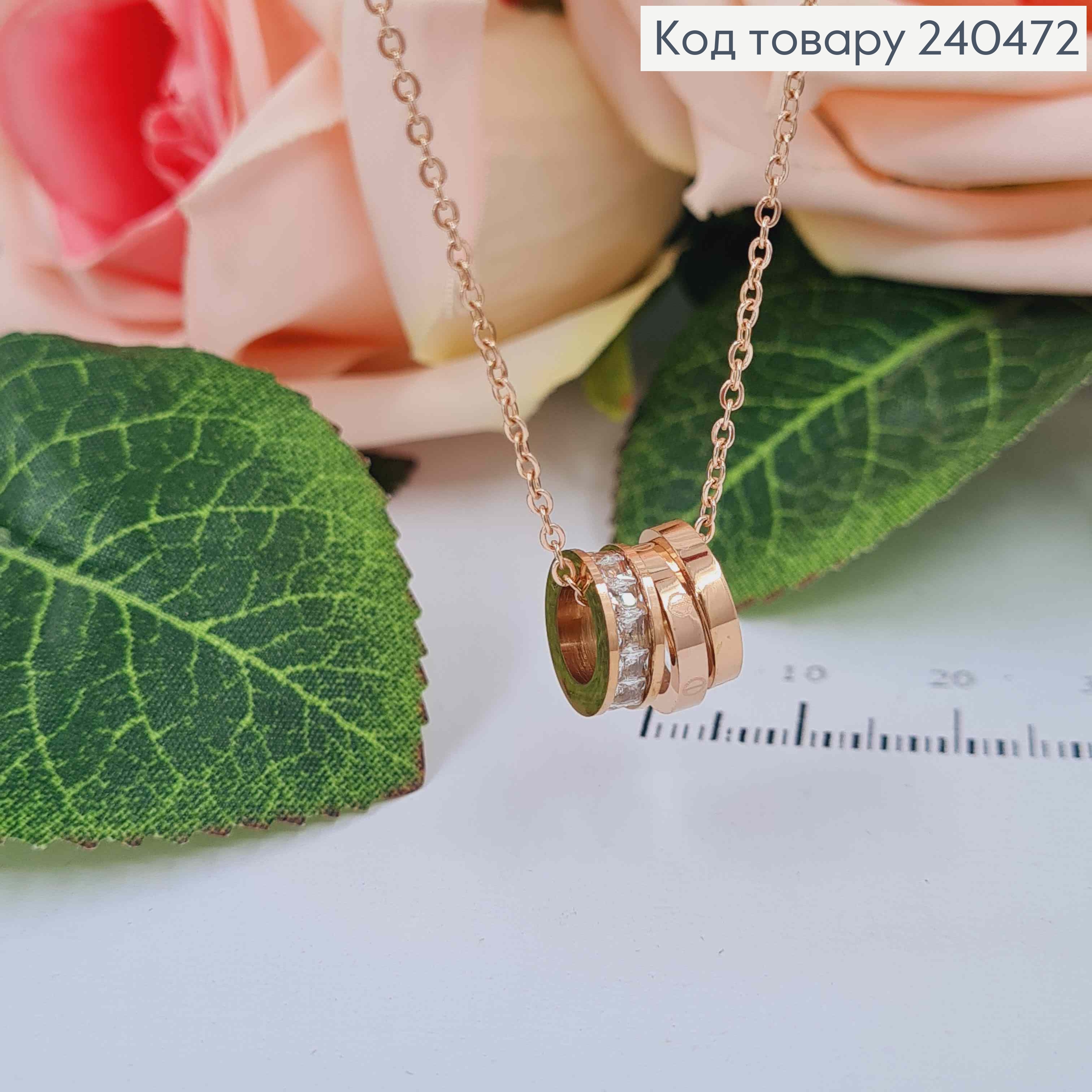 Ланцюжок, золотого кольору, з підвіскою Три колечка, з камінцями, 40+5см, сталь Stainless Steel