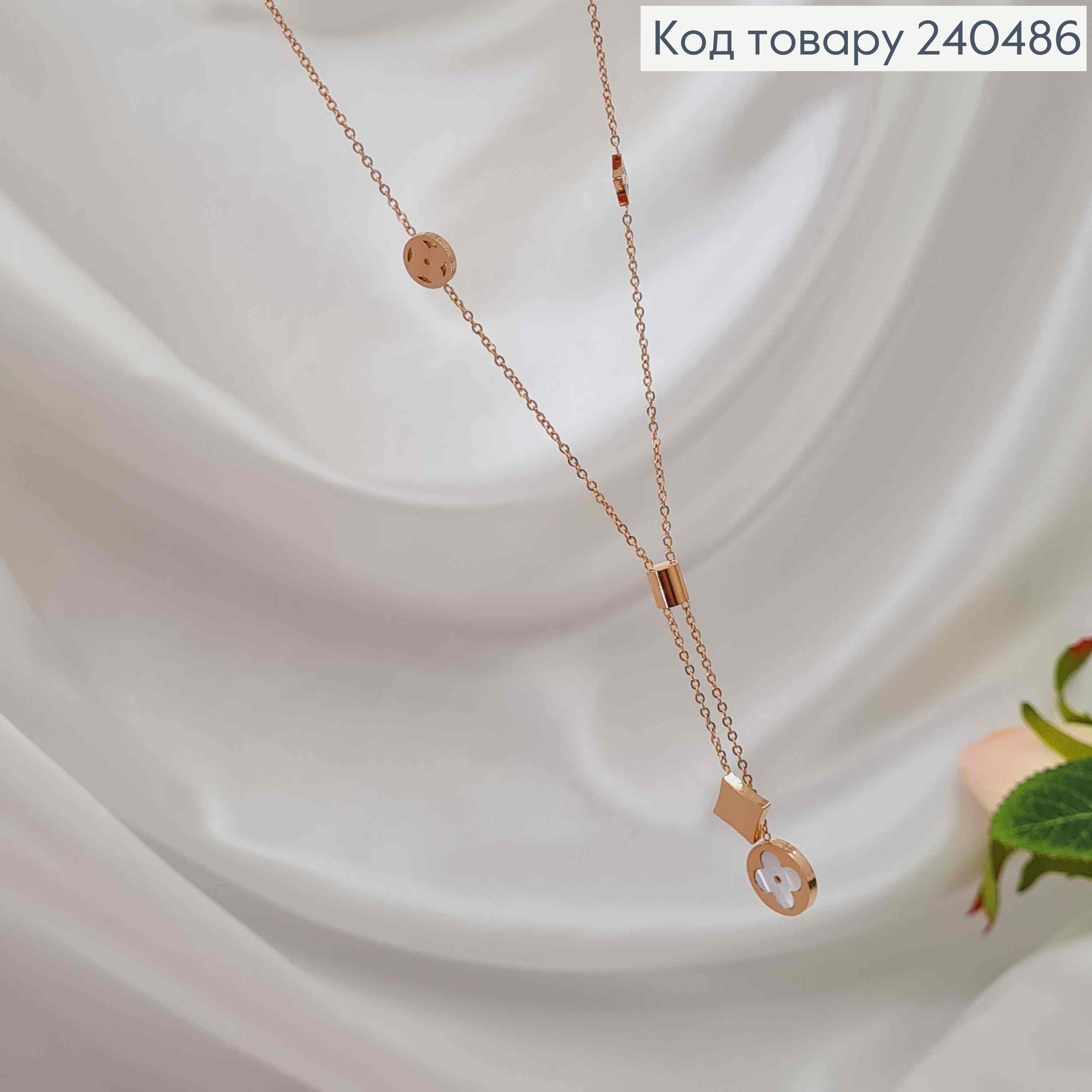 Ланцюжок, золотого кольору, з підвіскою "Van Cleef" з білою емалькою, 40+5см, сталь Stainless Steel