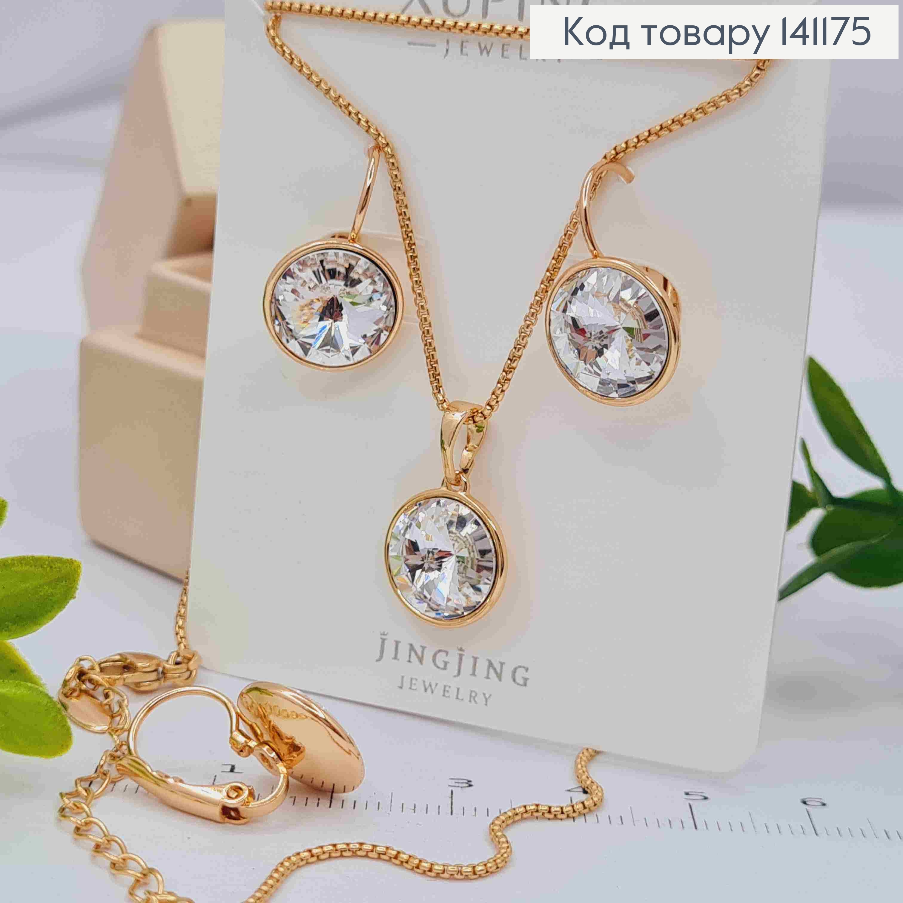 Набір: з підвісним камінням Сваровськи, Сережки кільця(1,2+0,6см), Ланцюжок(40+5см), Xuping 18К 141176 фото