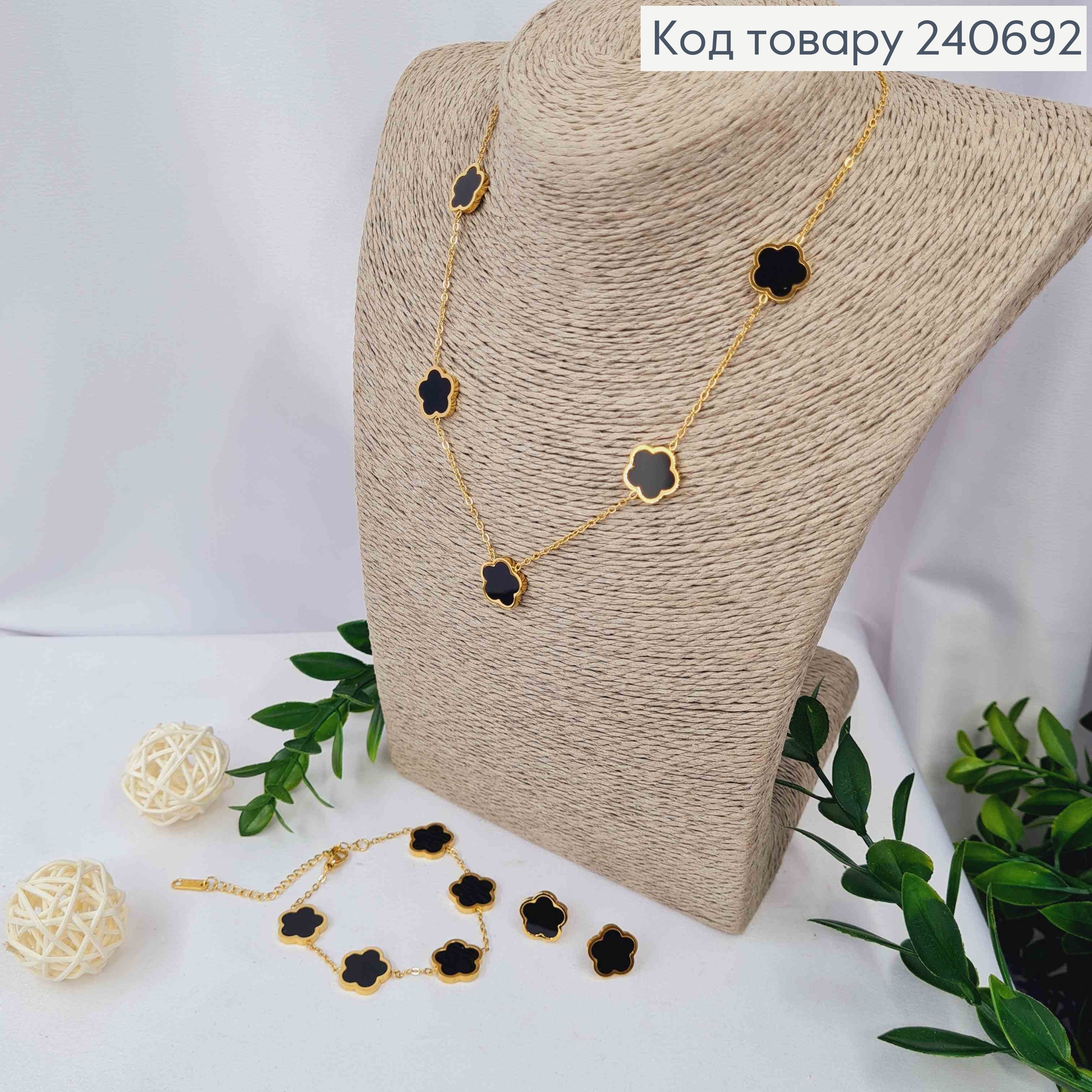 Набір "Чорна Квітка": Ланцюжок(41+5), Браслет(16+5), Сережки(1см), Лимон. кольору, Stainless Steel