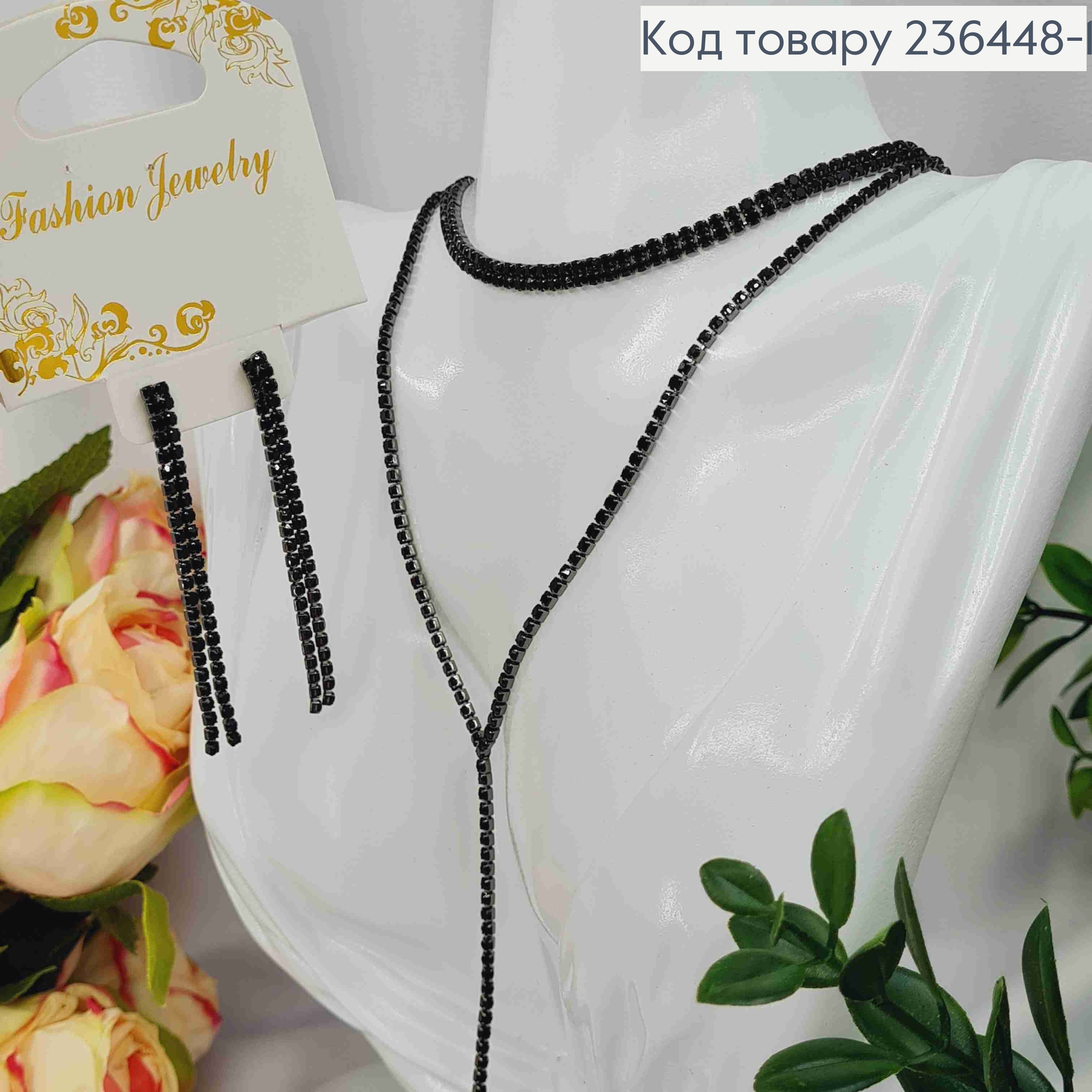 Набір (ЧОРНИЙ: Сережки гвоздики (6см), Подвійний ланцюжок з Камінців (43+9см*30см), чорний