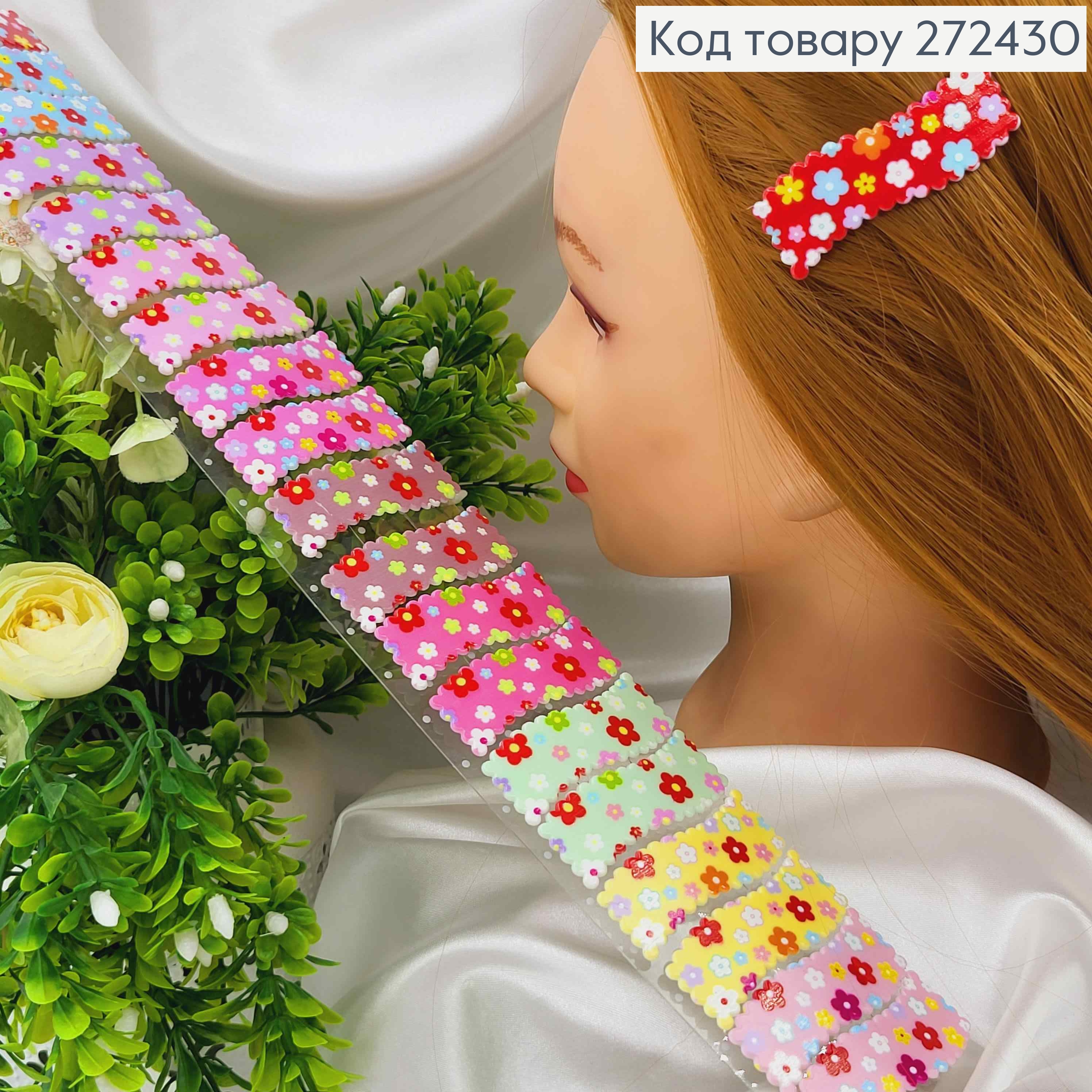 Набір дитячих заколок тік-так, Фігурні в квіточках 20шт/уп