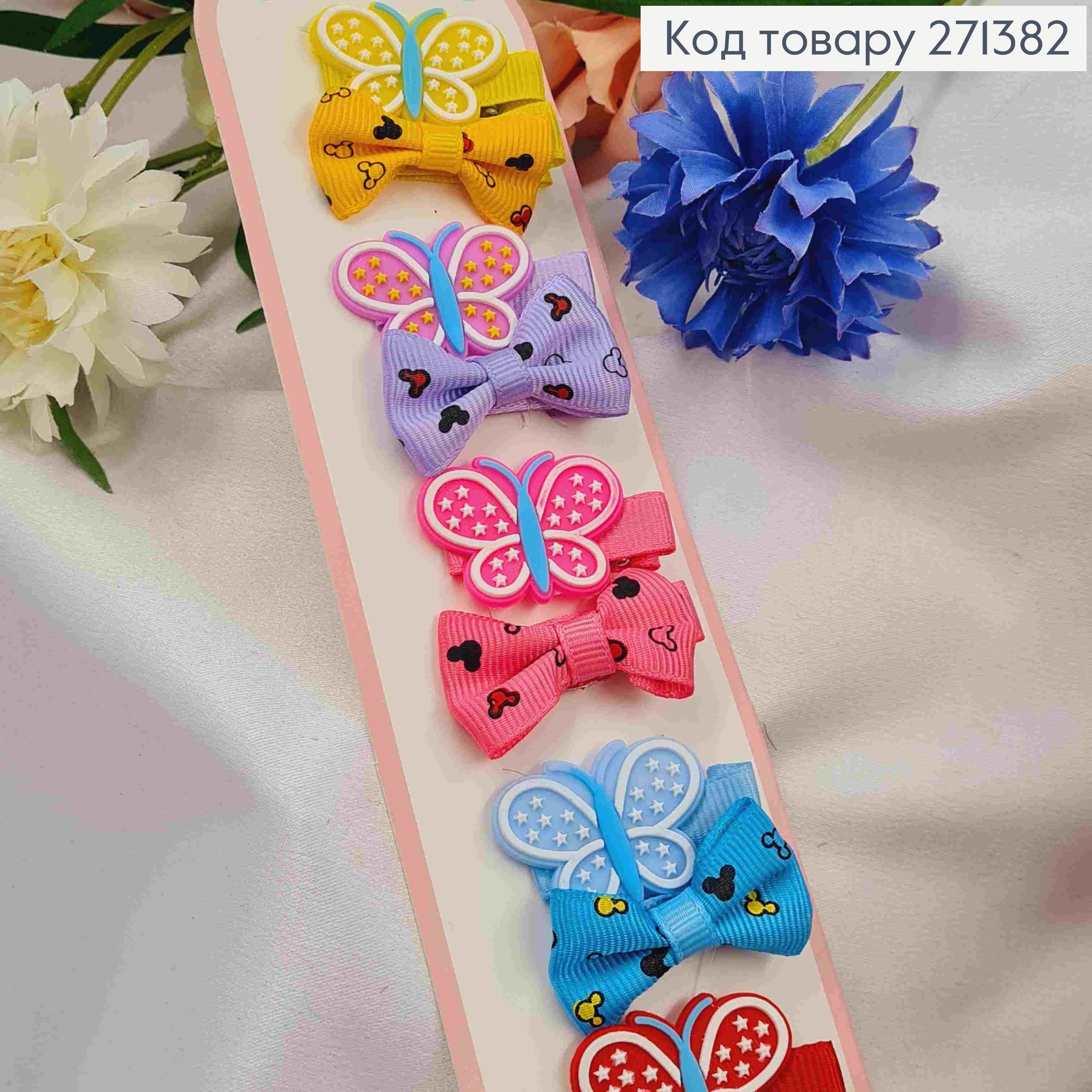 Набір дитячих заколок (20шт) МЕТЕЛИК+бантик, розмір 3*2см, заколка стріла 3,5см, кольори в асорт..