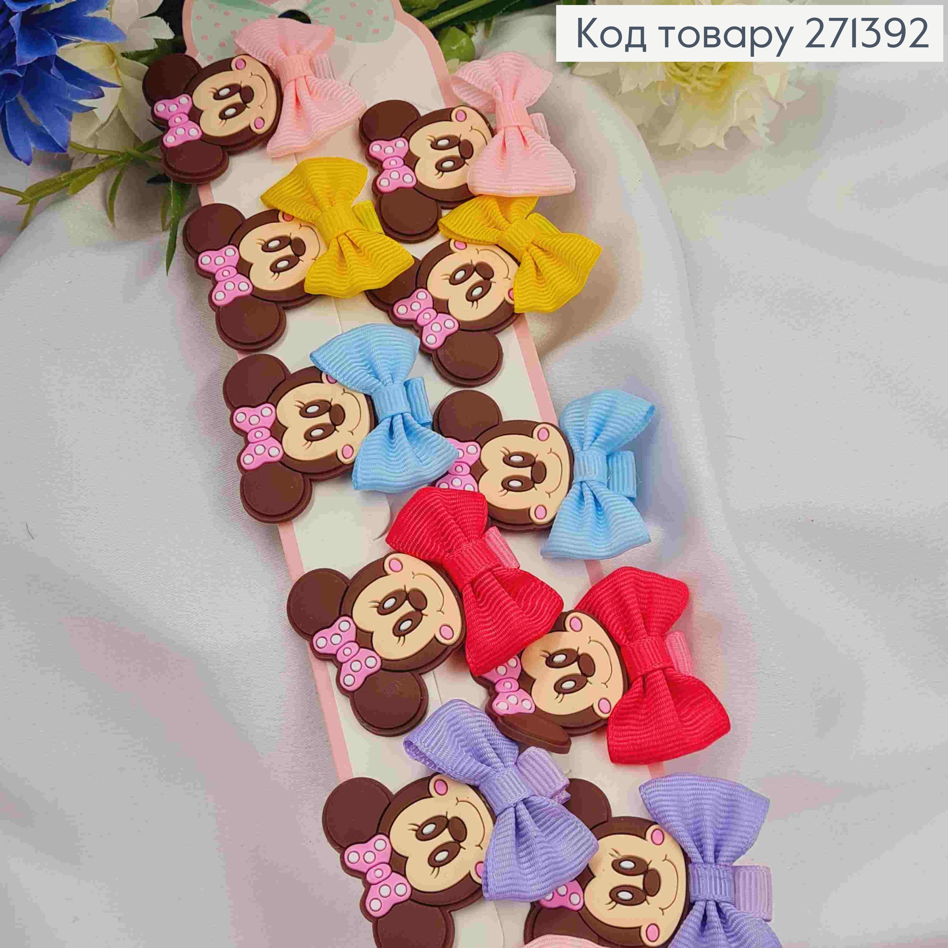 Набір дитячих заколок (20шт) МІННІ МАУС+БАНТ, розмір 3,5*4см, заколка стріла 3см, ЯСКРАВИХ кольорів