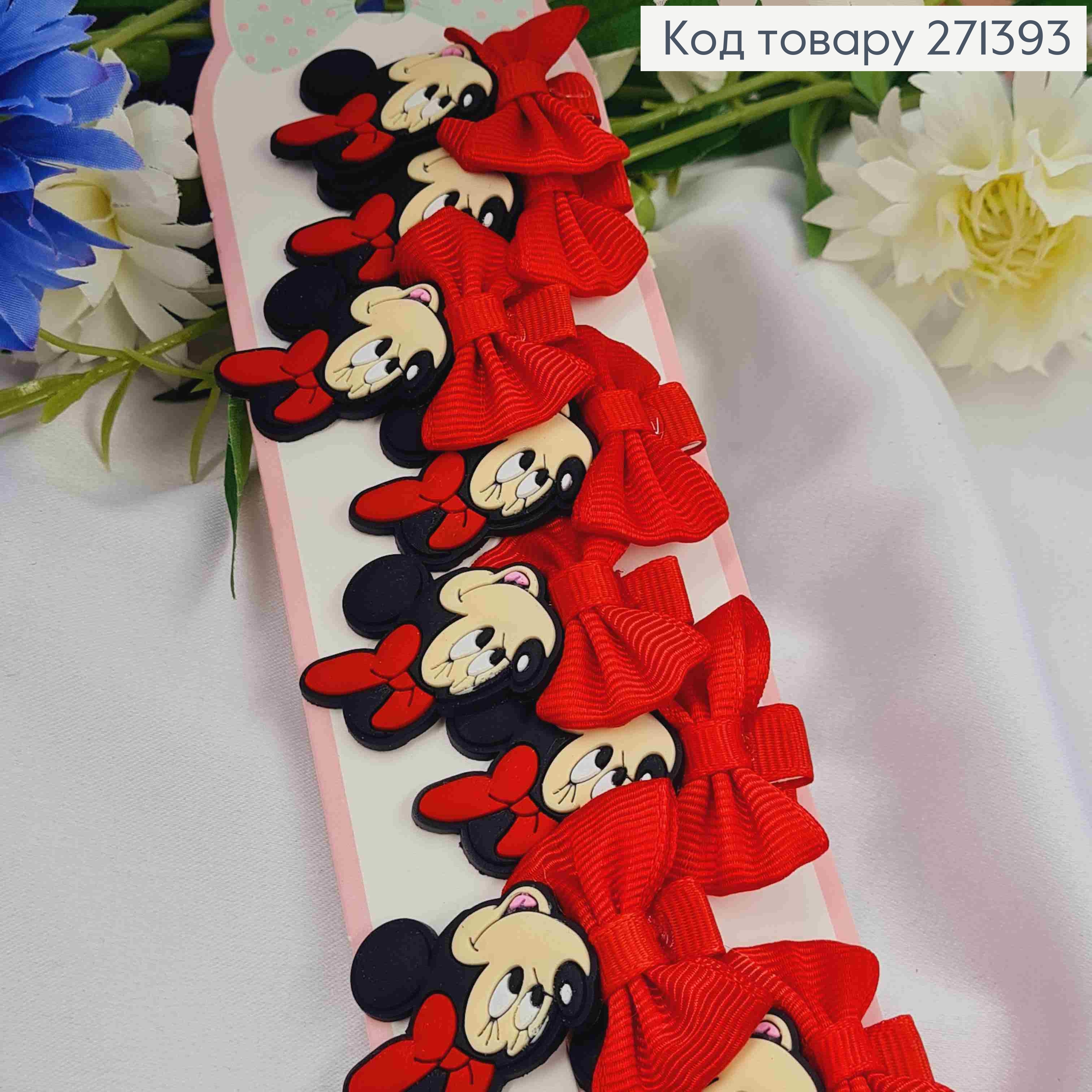 Набор детских заколок (20шт) МИННИ МАУС+БАНТ, размер 4,5*3см, заколка стрела 3см, КРАСНЫХ цветов