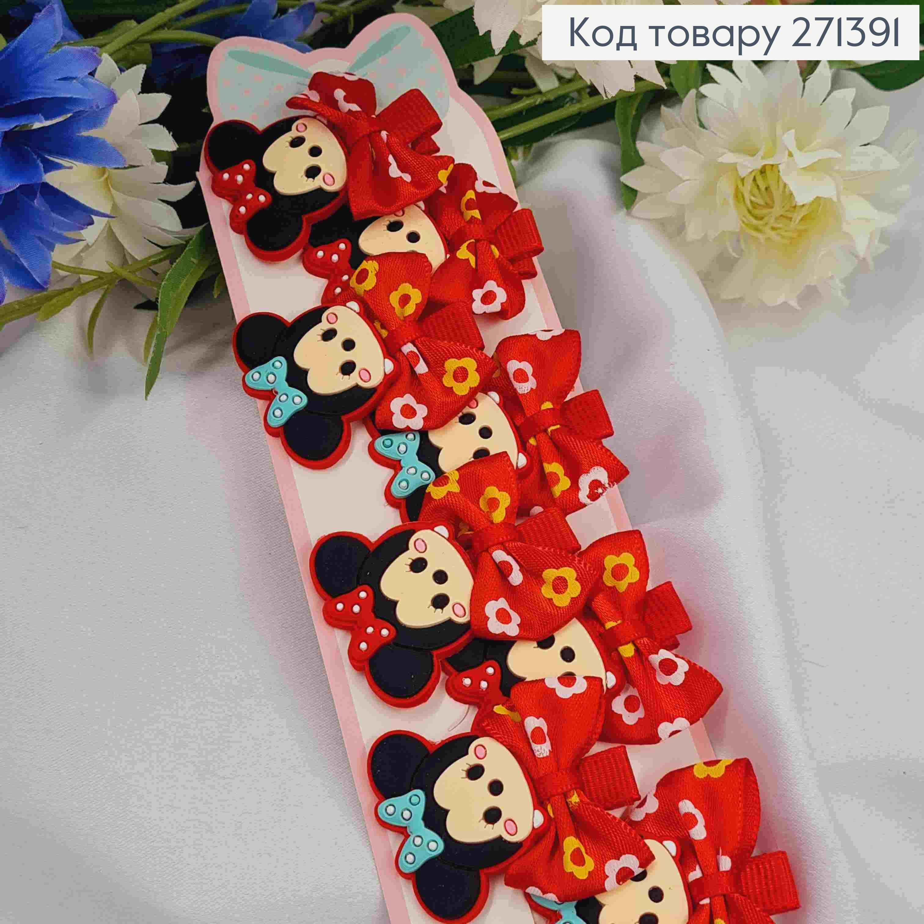 Набір дитячих заколок (20шт) МИШЕНЯ з Червоним Бантиком, розмір 3,5*2,5см, заколка стріла 3см