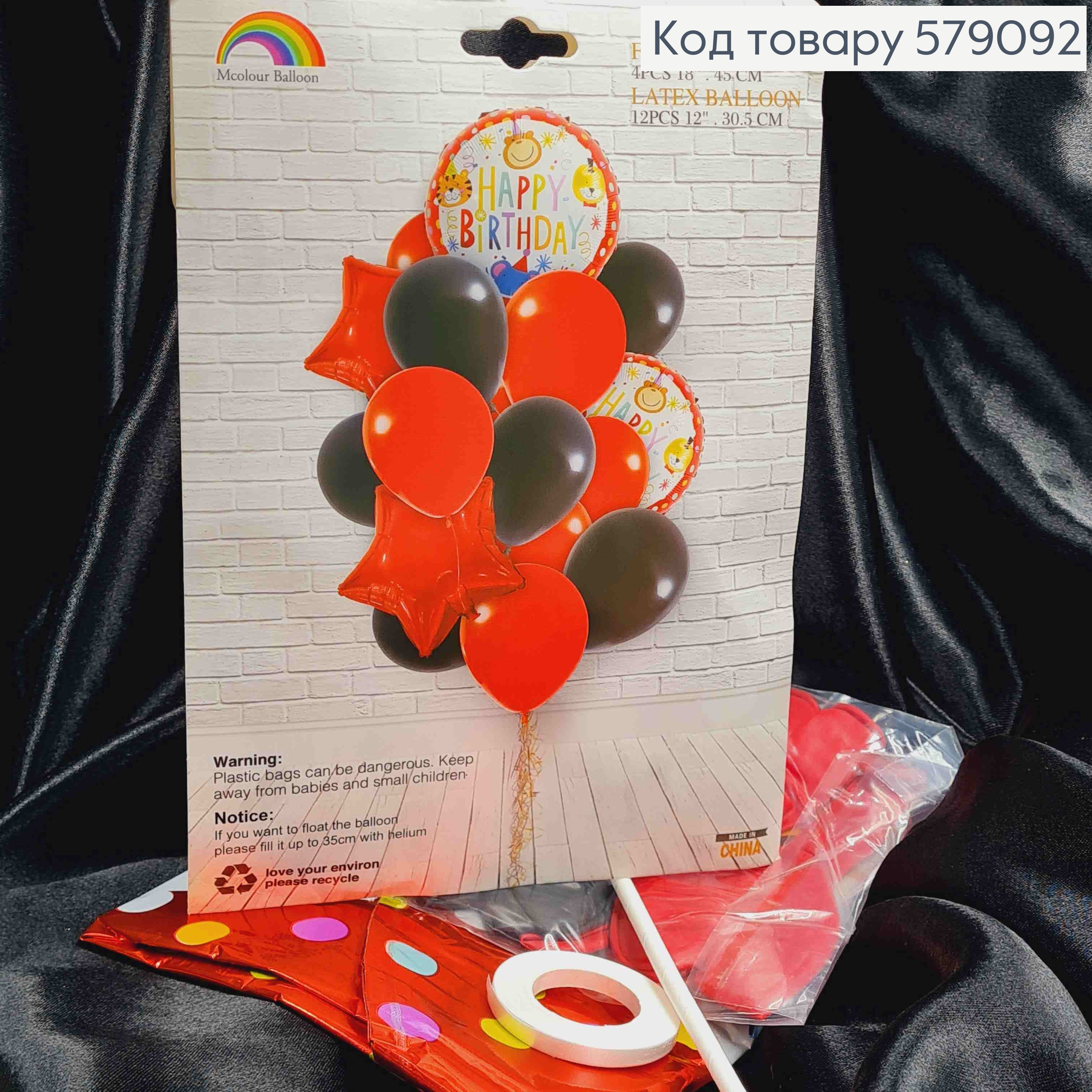 Набір фольгованих куль ЧЕРВОНО-ЧОРНІ, "Happy Birthday" (фольга-2шт, Зірка-фольга-2шт, Латекс2шт)