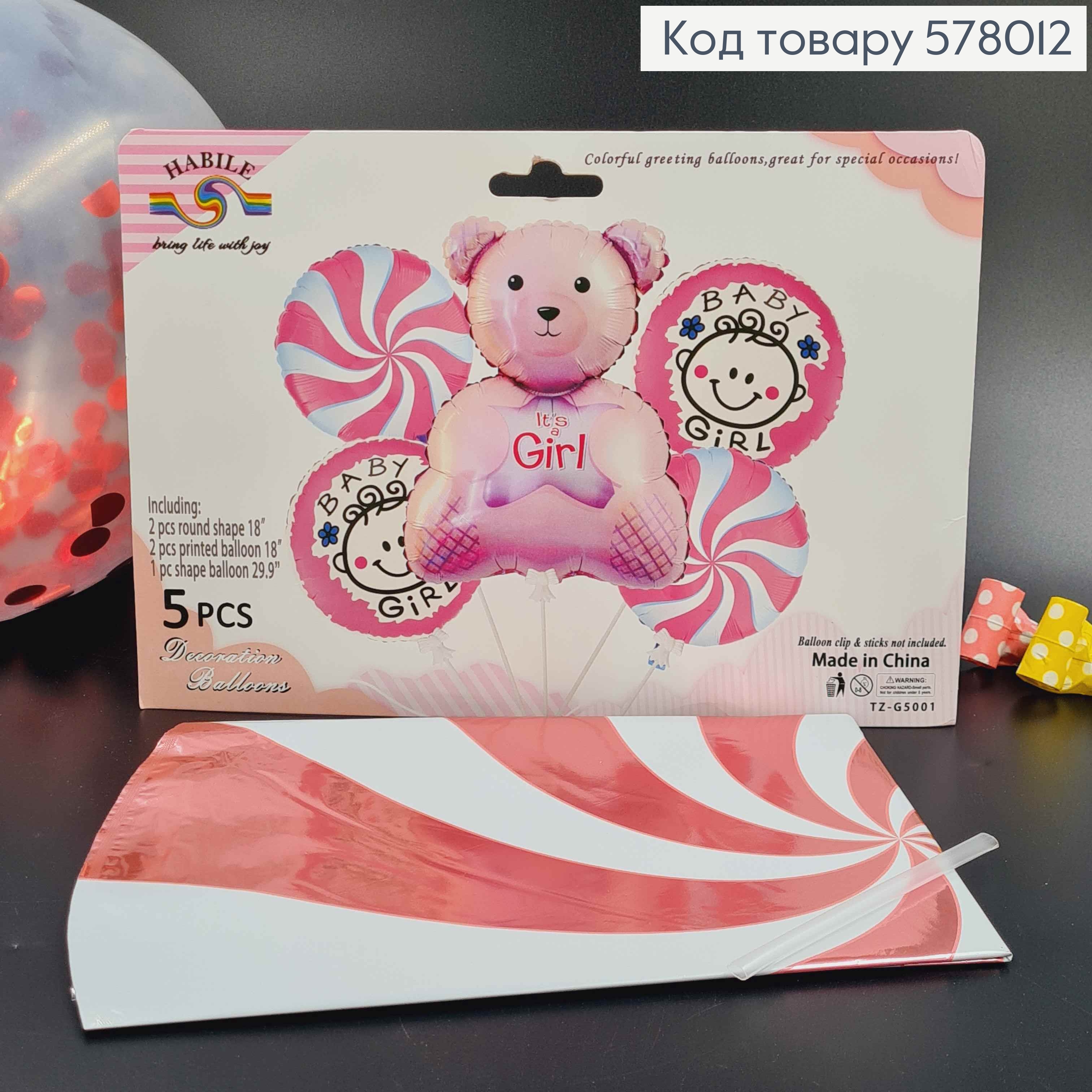 Набір фольгованих куль "It's a Girl", 4шт+1шт(ведмедик 29,9")