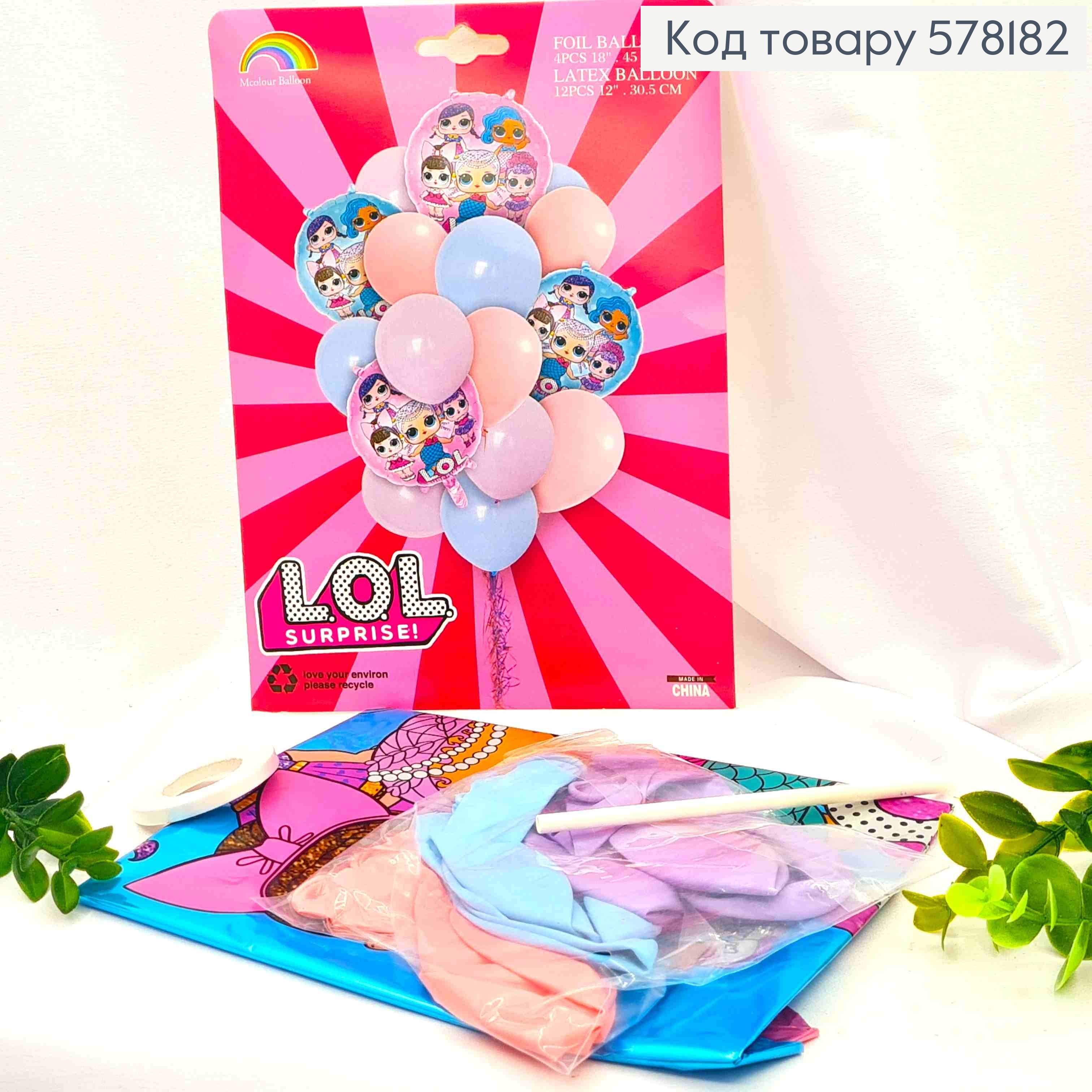Набір фольгованих куль, "L.O.L.", фольговані з LOL (4шт/18"), латексні (12шт/12")