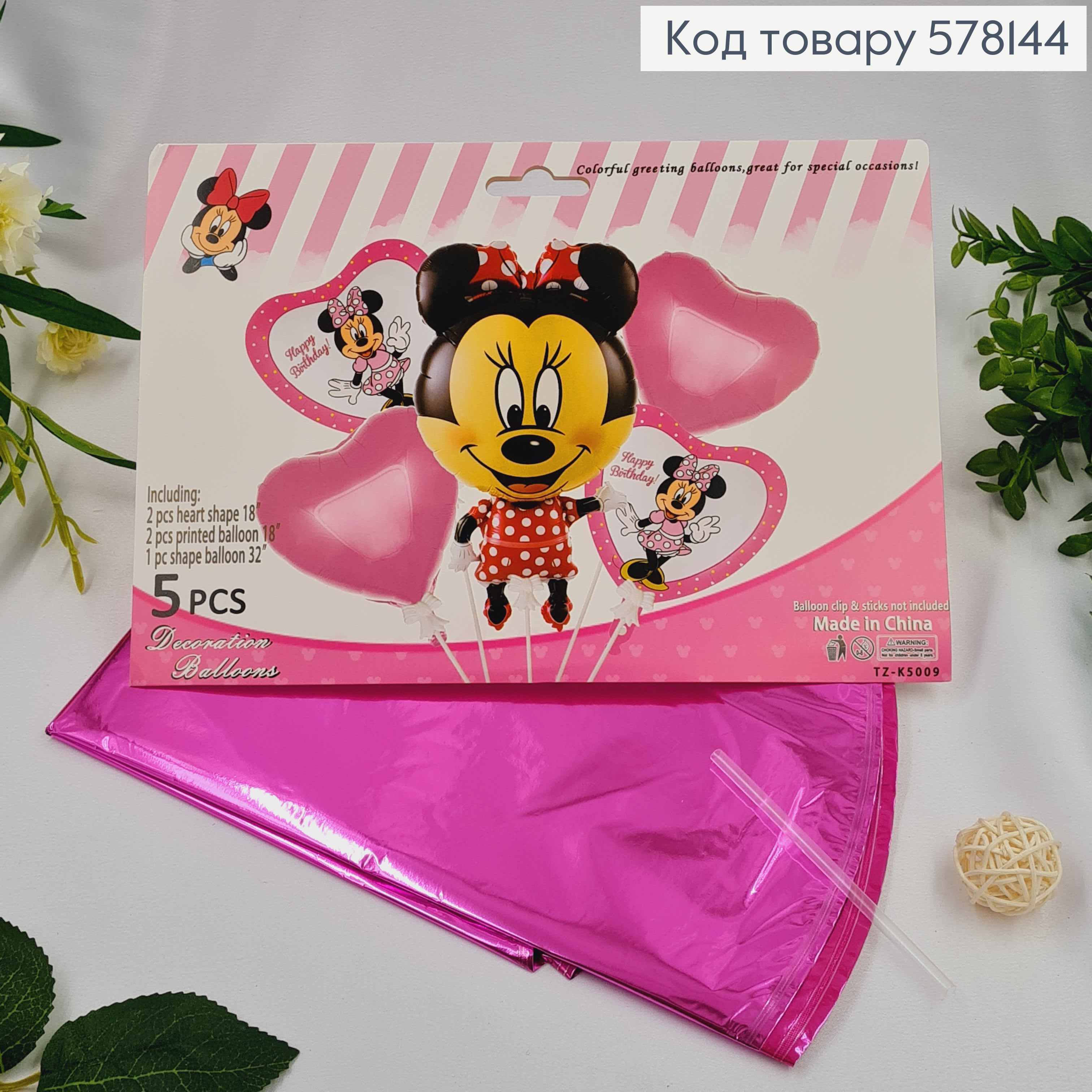 Набір фольгованих куль "Міні Маус", Сердечка 4шт, Міні 1шт.(32")