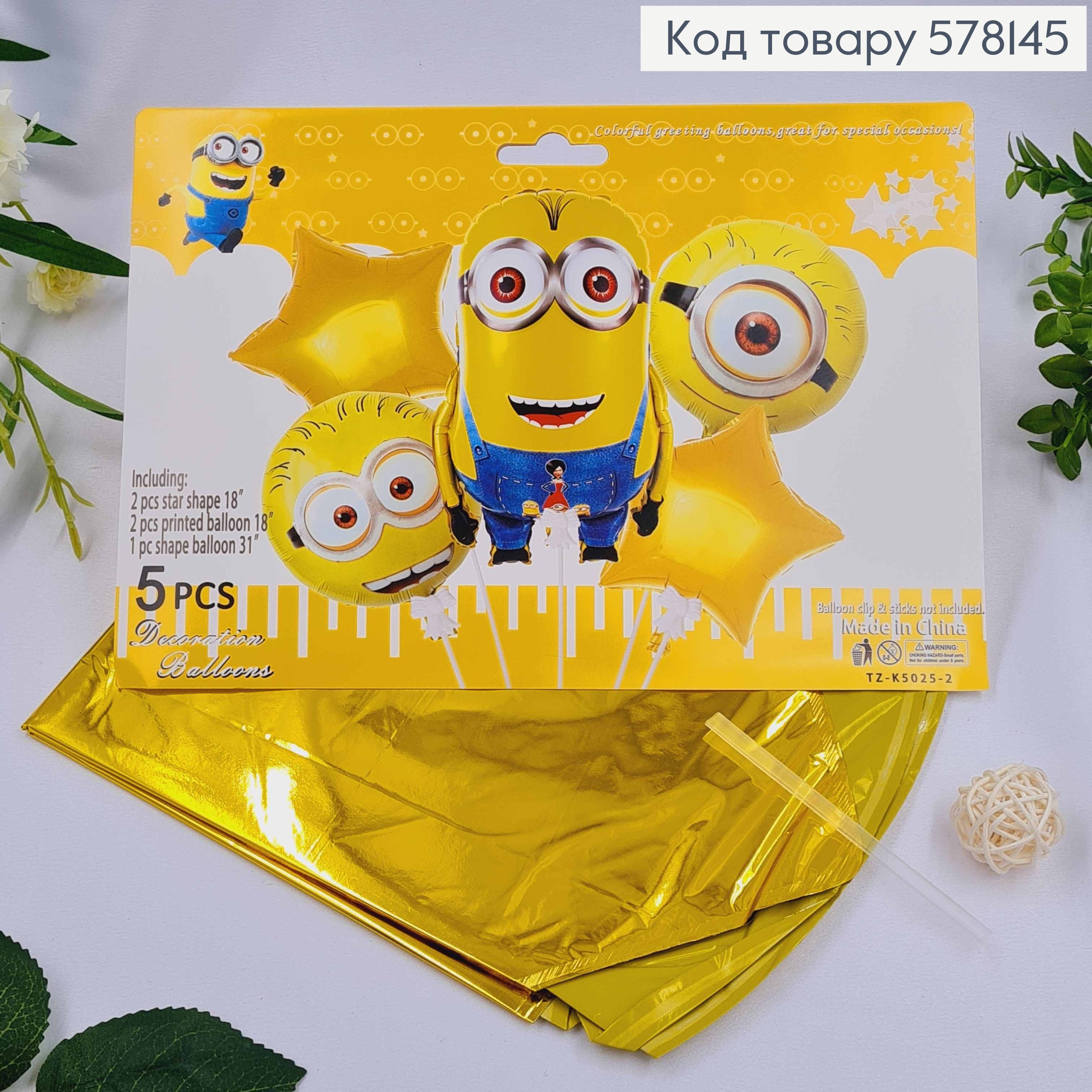 Набір фольгованих куль "Міньйони", Зірочки 2шт, круглі 2шт, Міньйон 1шт.(31")