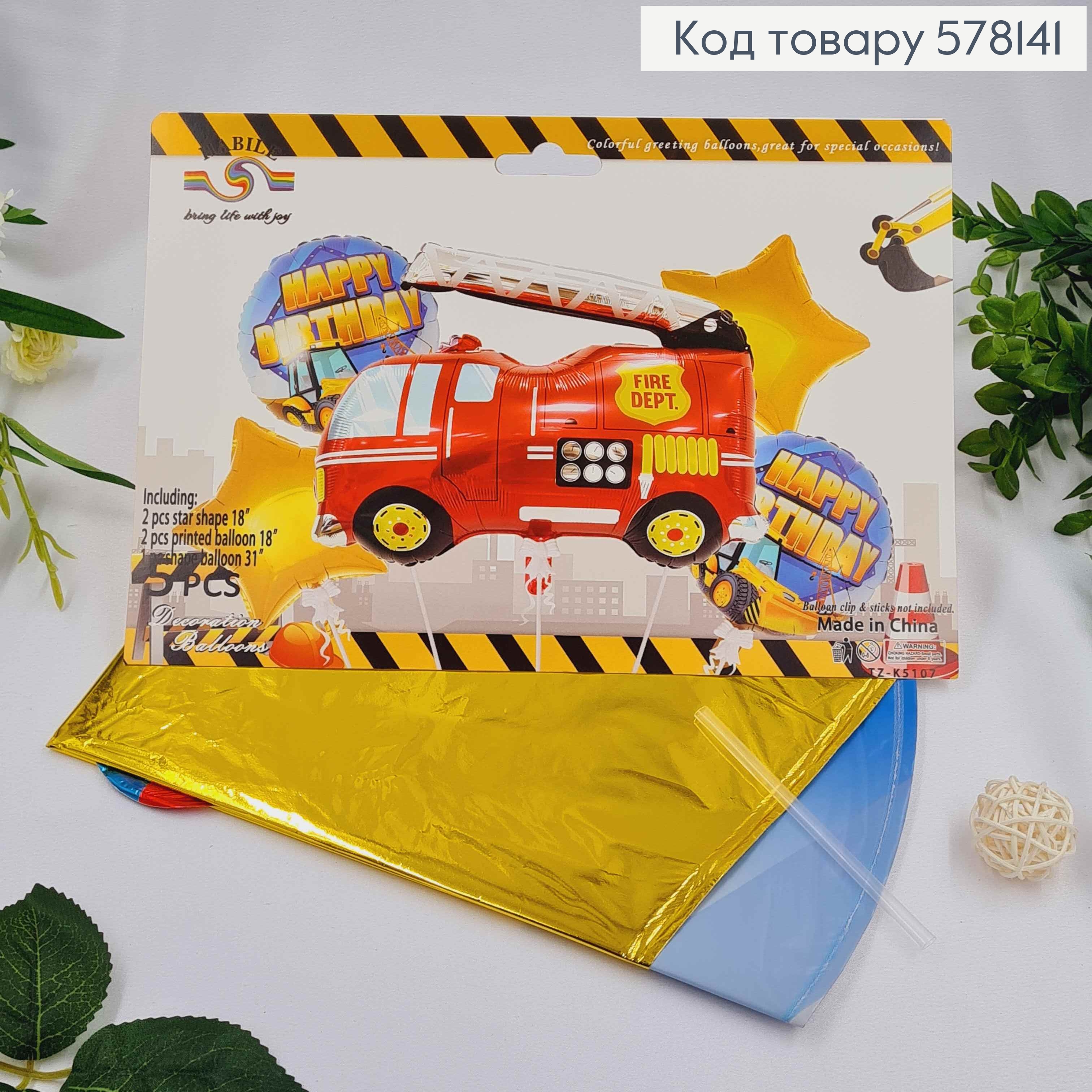 Набір фольгованих куль "Пожежна машина", зірочки 2шт, круглі 2шт, Машина 1шт.(31")