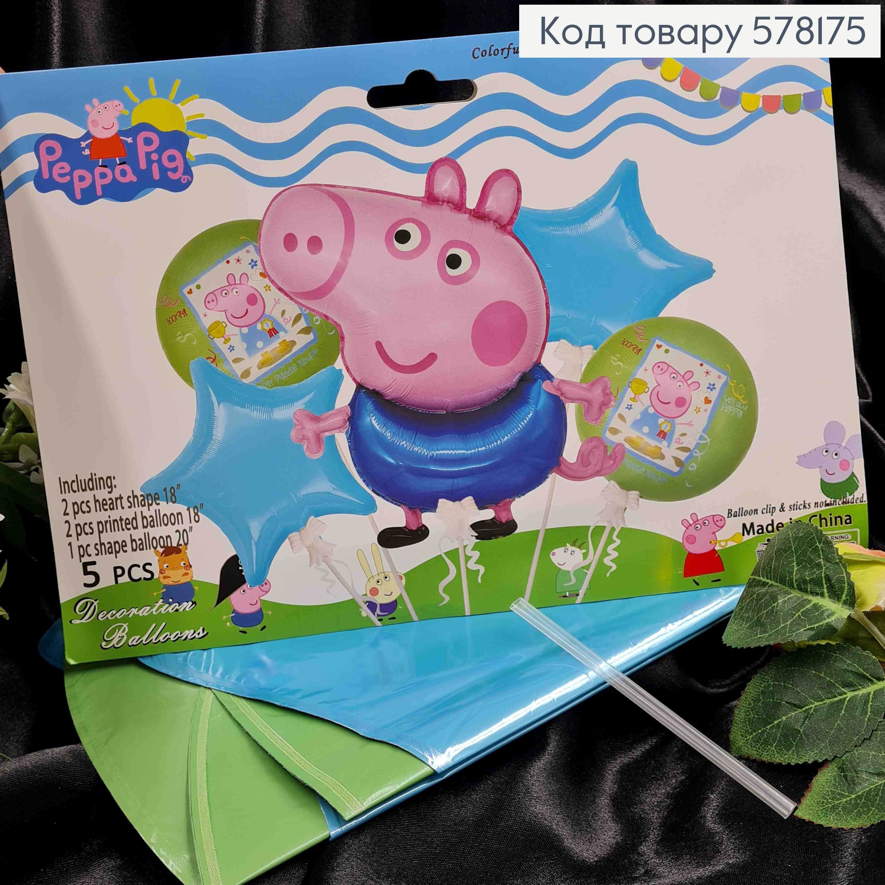 Набір фольгованих куль, "Свинка ПЕПА", Серце (2шт), Круглі (2шт), Свинка ПЕПА (1шт/29'') 578173 фото