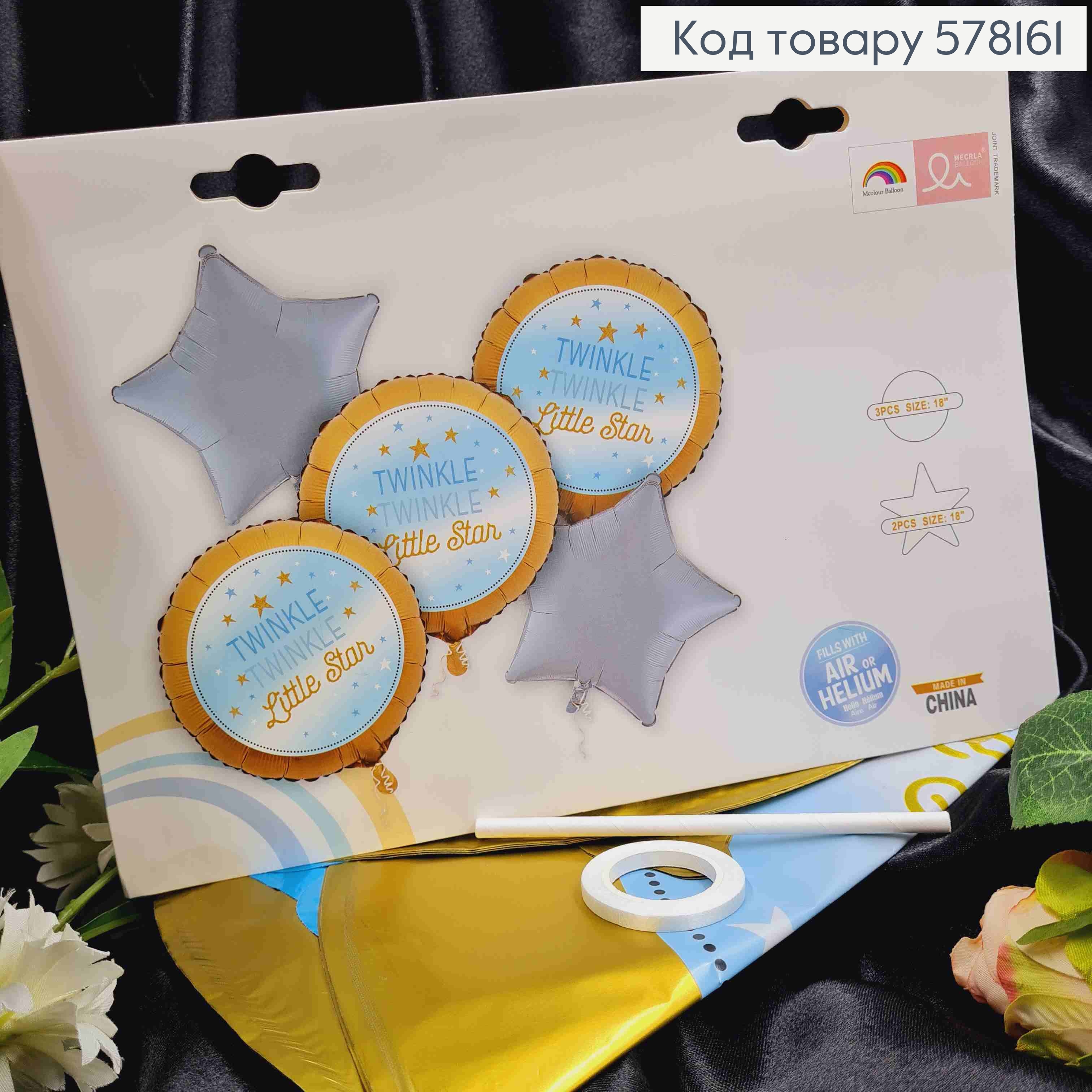 Набір фольгованих куль "Twinkle Little Star", Зірочки 2шт, Круглі 3шт, блакитного кольору