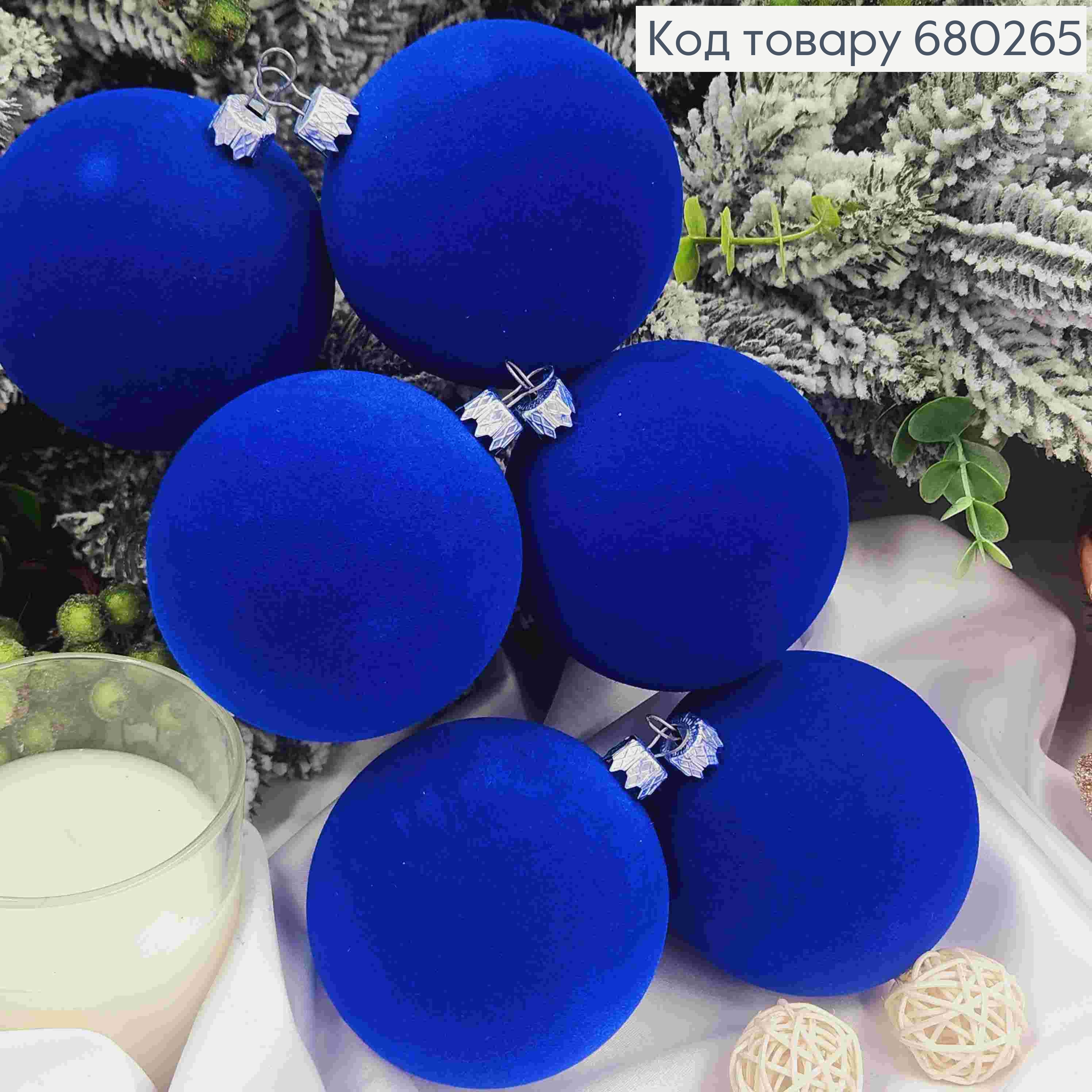 Набір іграшок 80мм (6шт) "ОКСАМИТ", СИНІЙ колір, новорічні прикраси, пластик, Україна