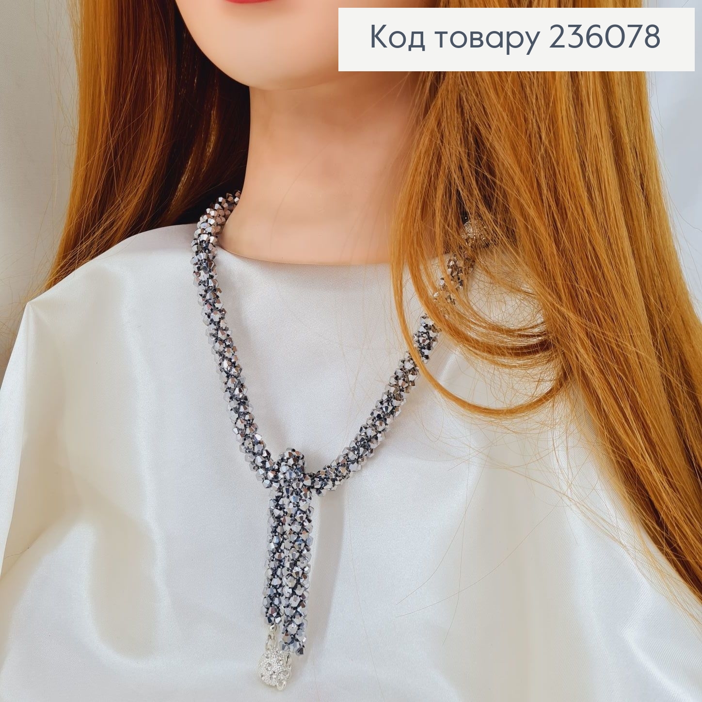 Біжутерія на шию Шнурок прикрашений Стразами, 119см, Срібного кольору, Fashion Jewelry 236492 фото
