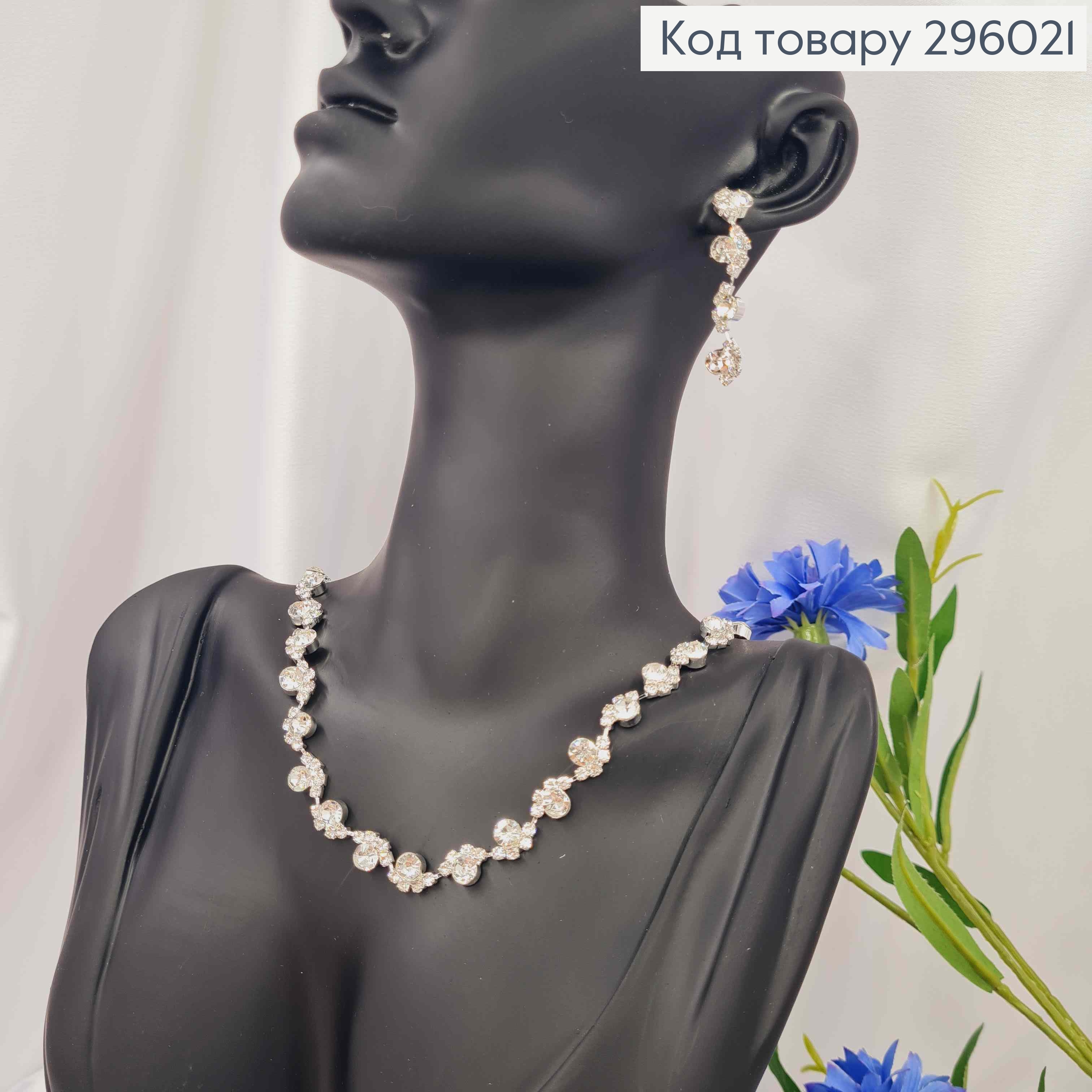 Набір: Кольє та Сережки гвіздки, "Краплинки" в оправі з маленьких Блискучих камінців 296044 фото