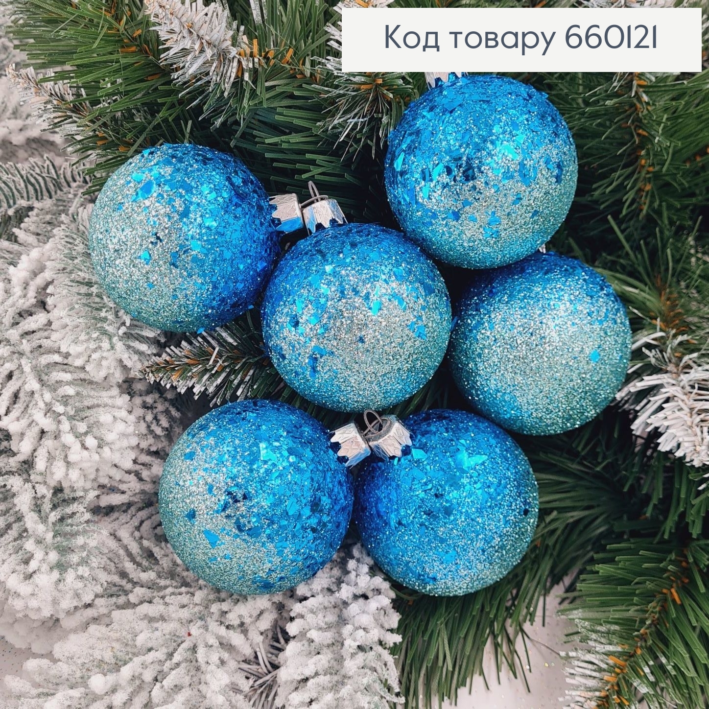Набір куль(6шт),  60 мм  "МАТОВІ напівпрозорі", СИНІЙ колір,новорічні прикраси, пластик,  Україна 660204 фото
