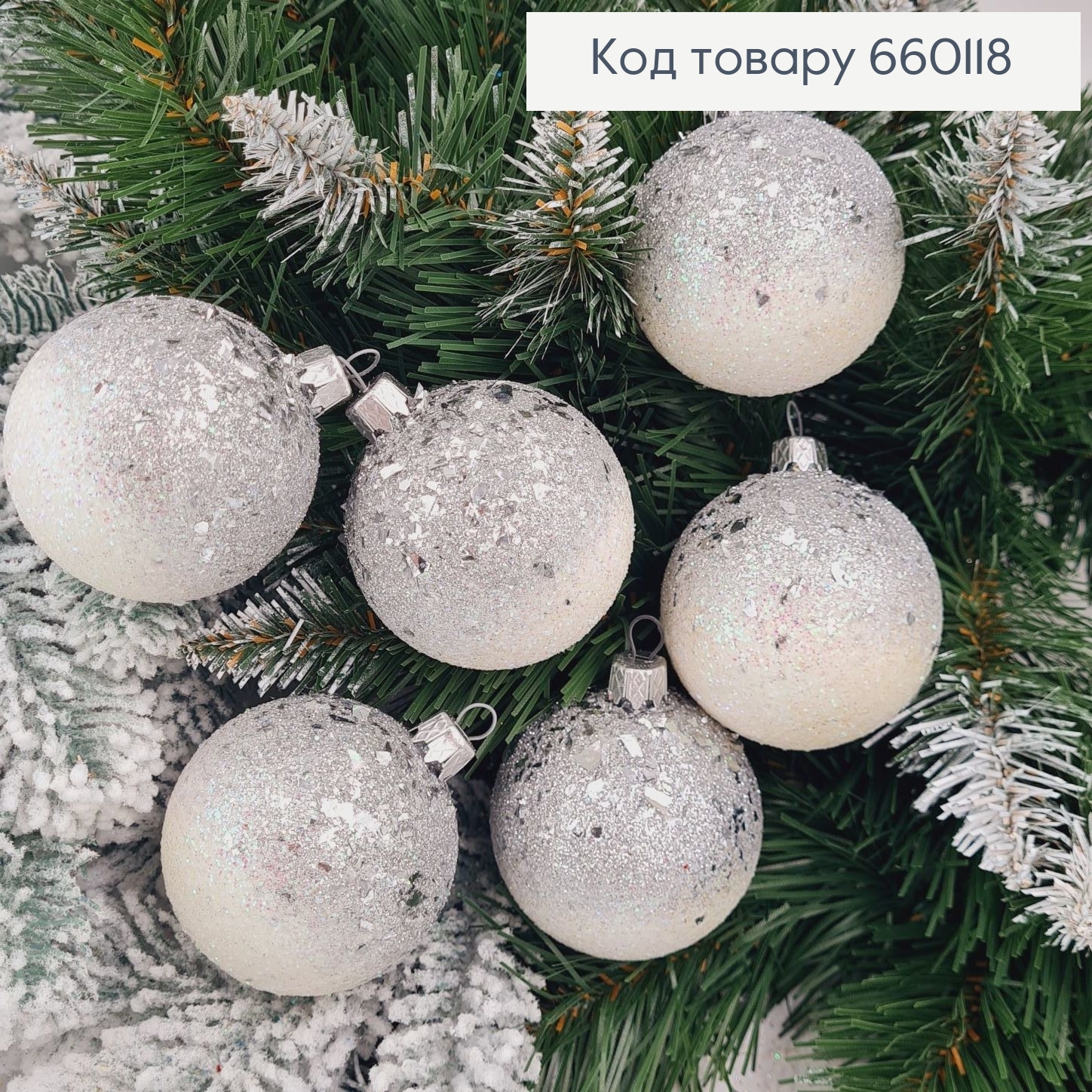 Куля, (1шт)  60 мм  "МЕТАЛІК", СРІБНИЙ колір,новорічні прикраси, пластик,  Україна 660210 фото