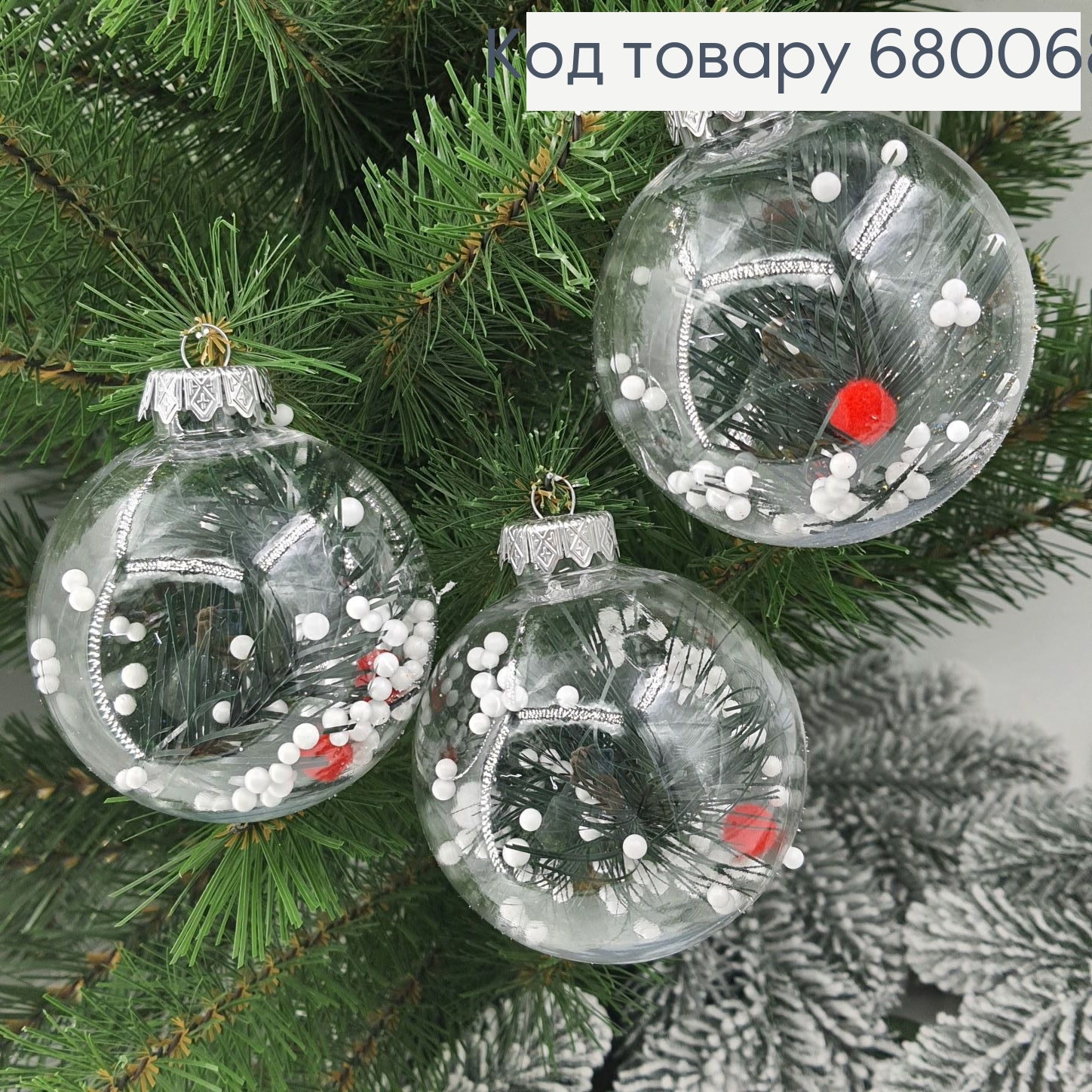 Набір куль 80 мм прозорих з гілочкою ялинки 3 шт/уп