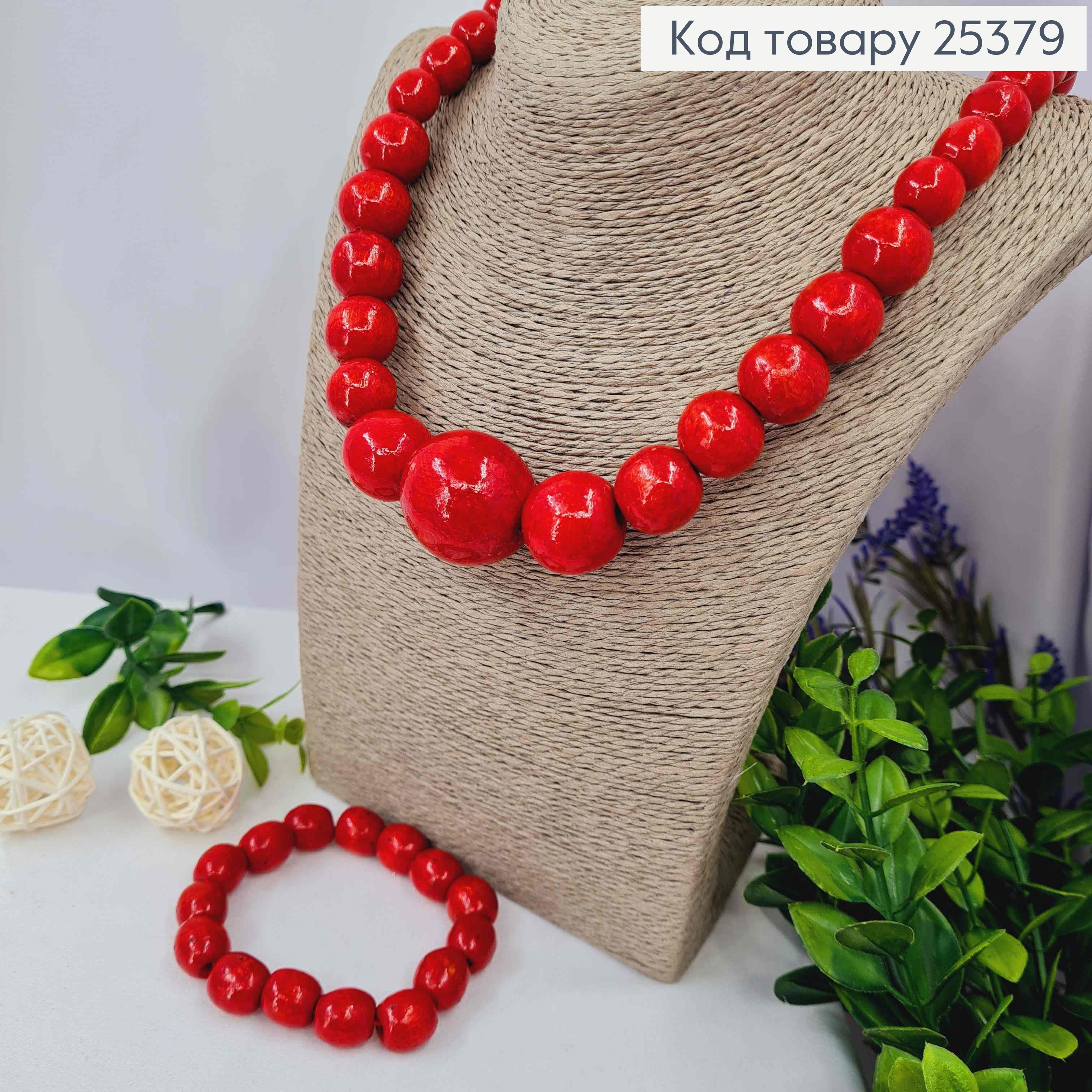 Набір : Намисто (56см) + Браслет (18см), ЧЕРВОНО-ЧОРНОГО кольору, дерев'яний, ручна робота 25416 фото