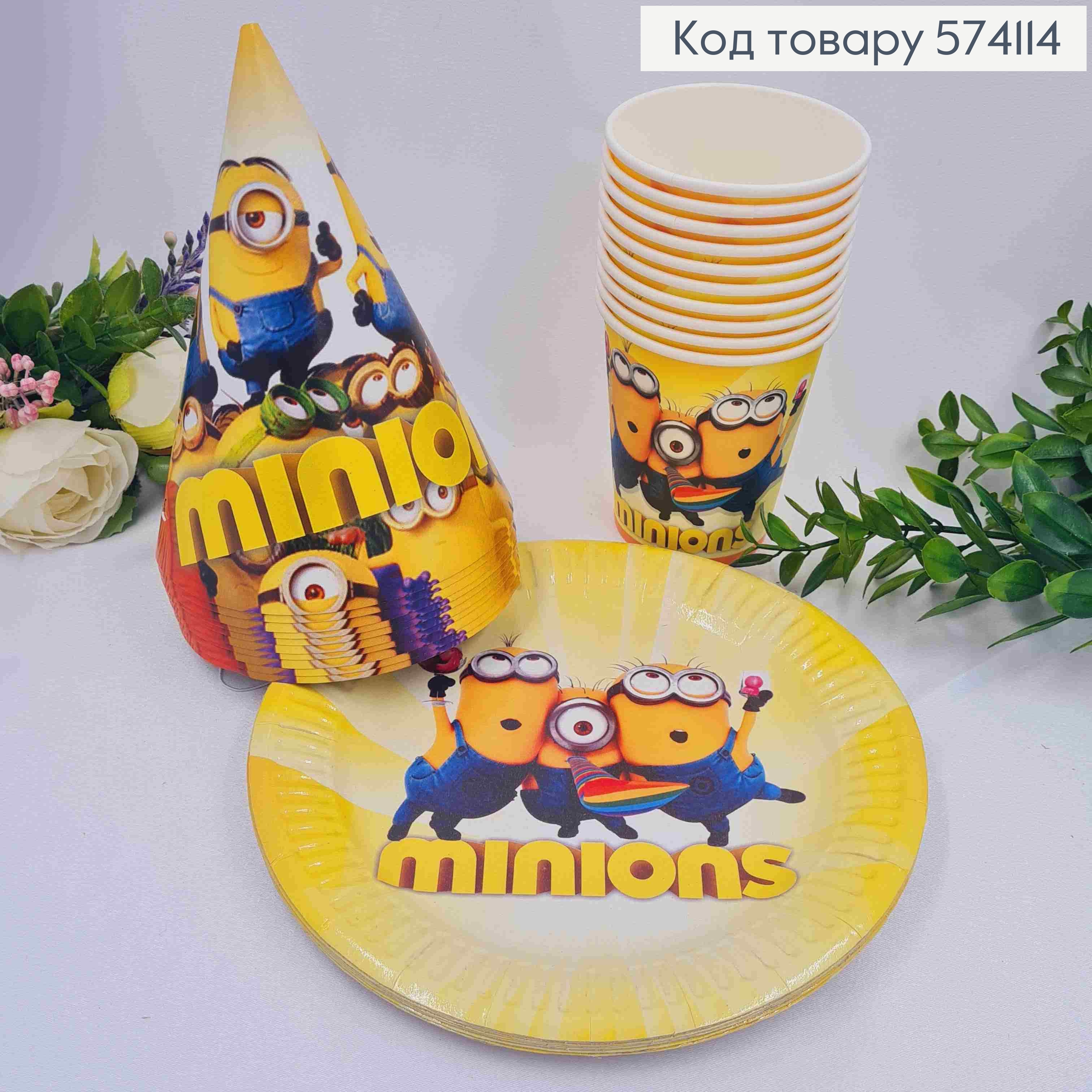 Набір паперовий, святковий, "Minions", по 10шт стаканчиків, тарілочок, ковпачків, Україна