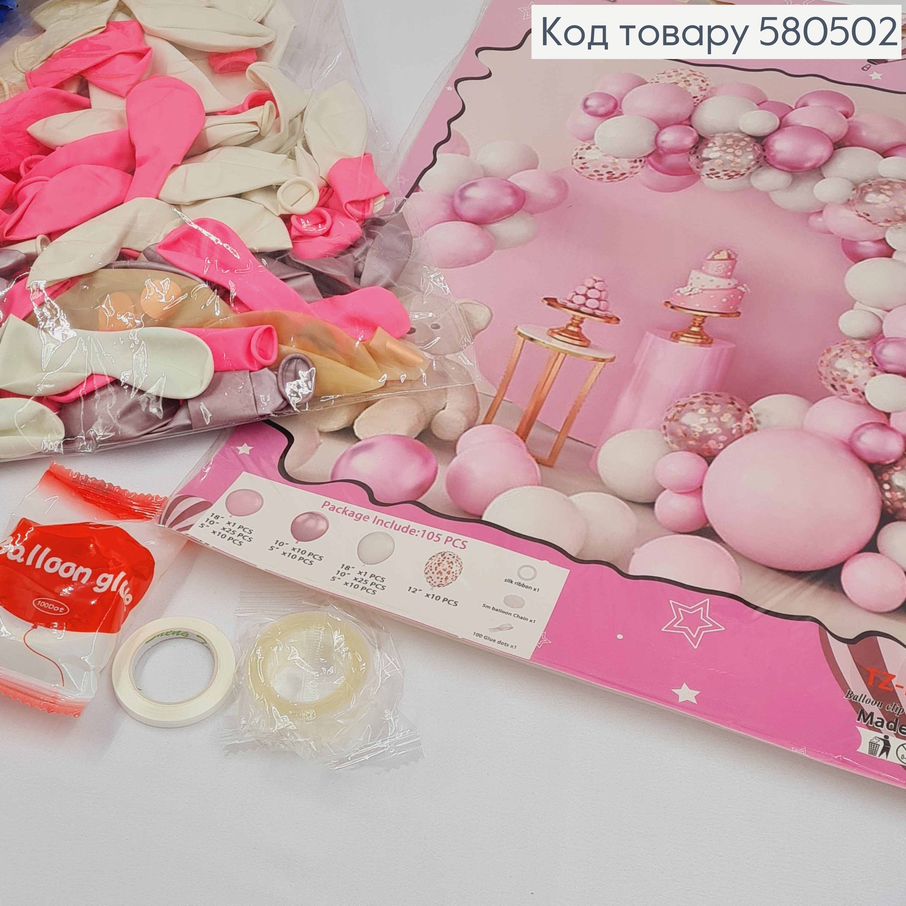 Набір повітряних куль "Фотозона "БІЛО-РОЖЕВА",105 латексних кульок(10шт - 12", 95шт - 10")+3стрічки