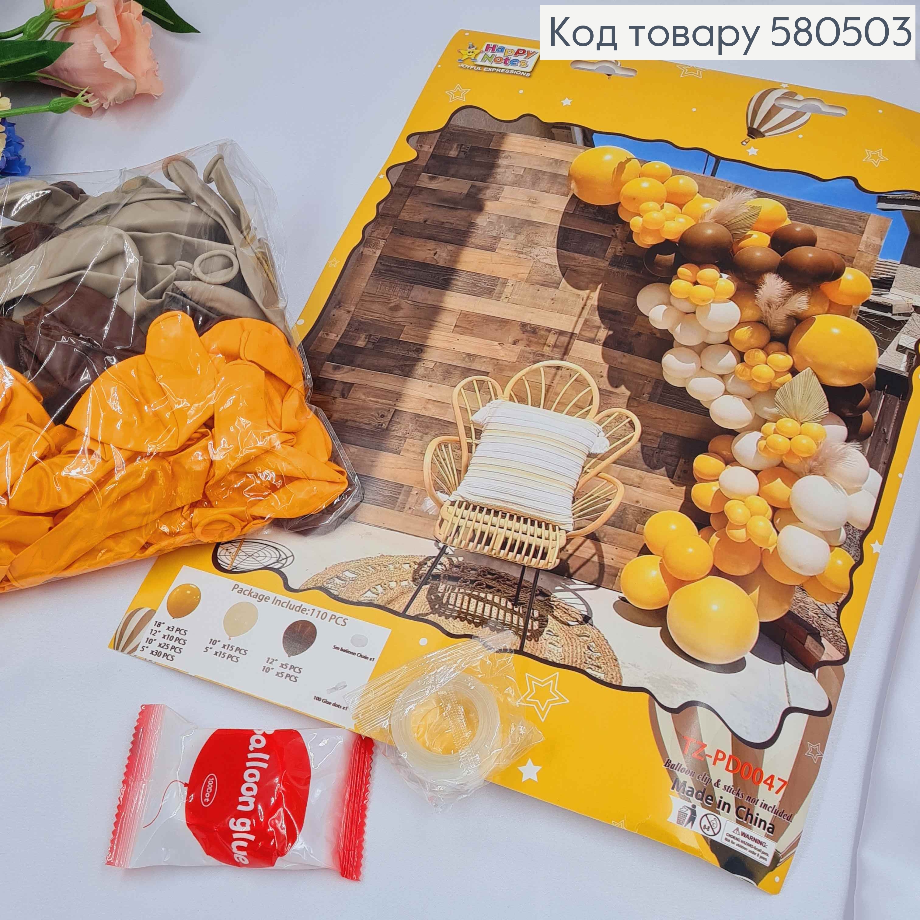 Набір повітряних куль "Фотозона "ОРАНЖЕВО-КОРИЧНЕВА",110 латексних куль(18",12",10",5"))+2стрічки