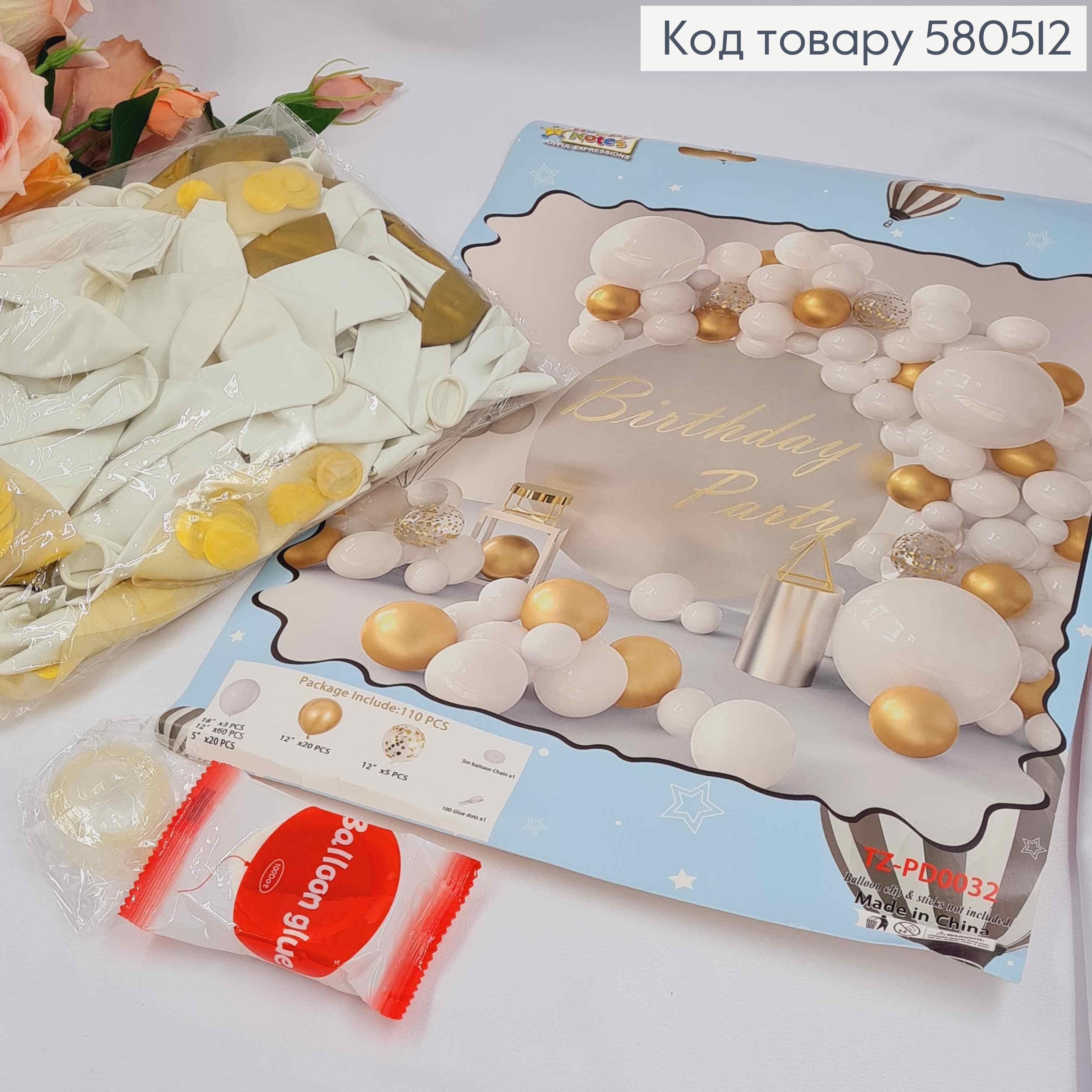 Набір повітряних куль "Фотозона"БІЛО-ЗОЛОТА",110шт(18"12",5")+2стрічки