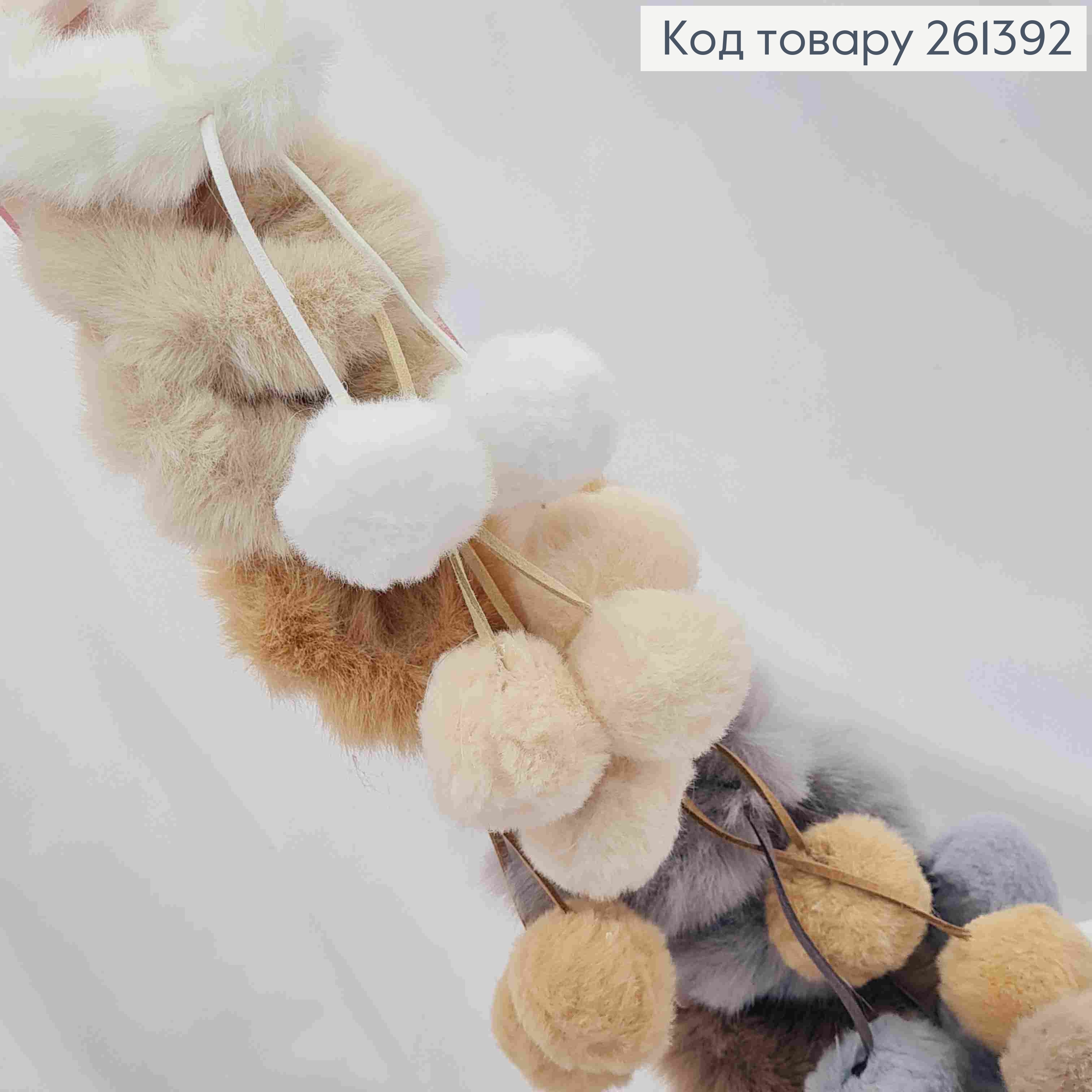 Набір резинок (10шт) "ПУШОК" з хутряними помпонами, Пастельні кольори, резинка 7см, помпони 6+3см 261393 фото