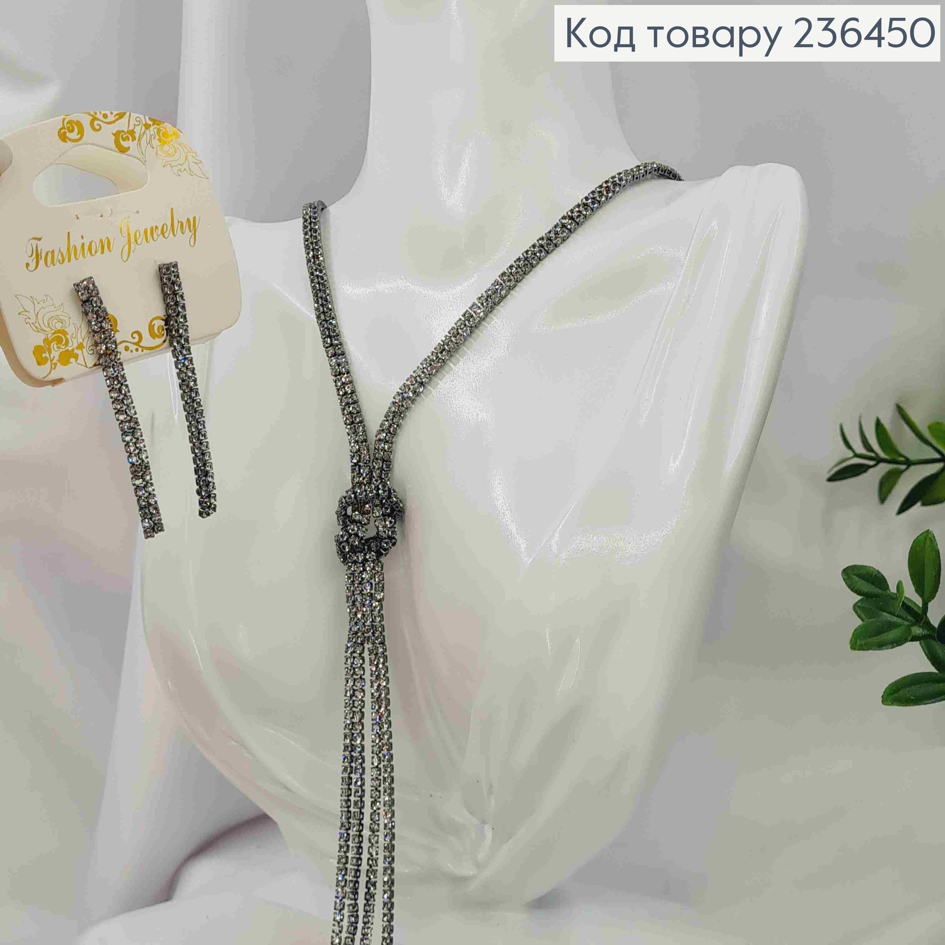 Набір: Сережки гвоздики (6см), Ланцюжок з подовжувачем з Камінців (4+10см*25см), кольору Металік