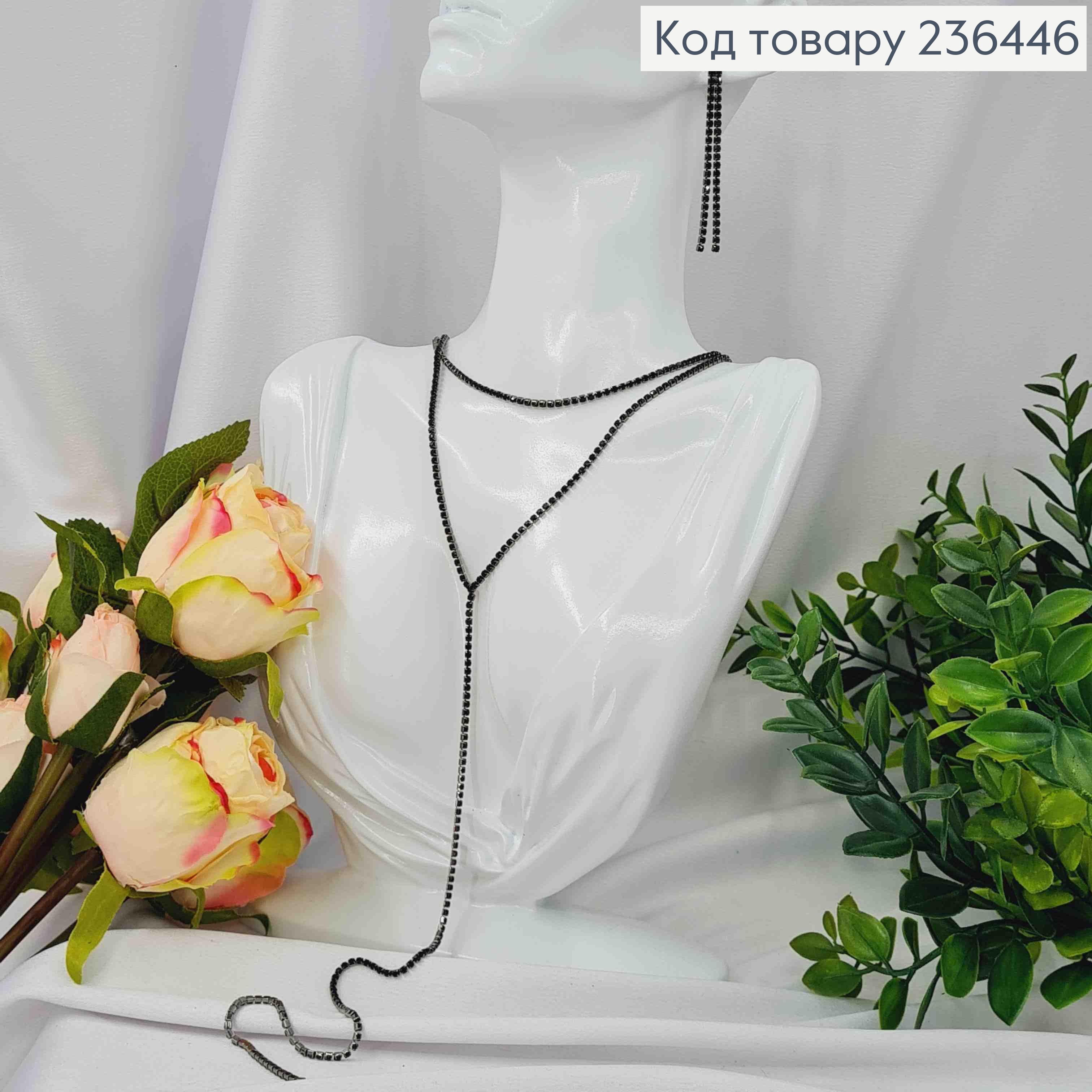 Набір (ЧЕРНИЙ): Сережки гвоздики (6см), Подвійний ланцюжок з Камінців (41+6см*30см)