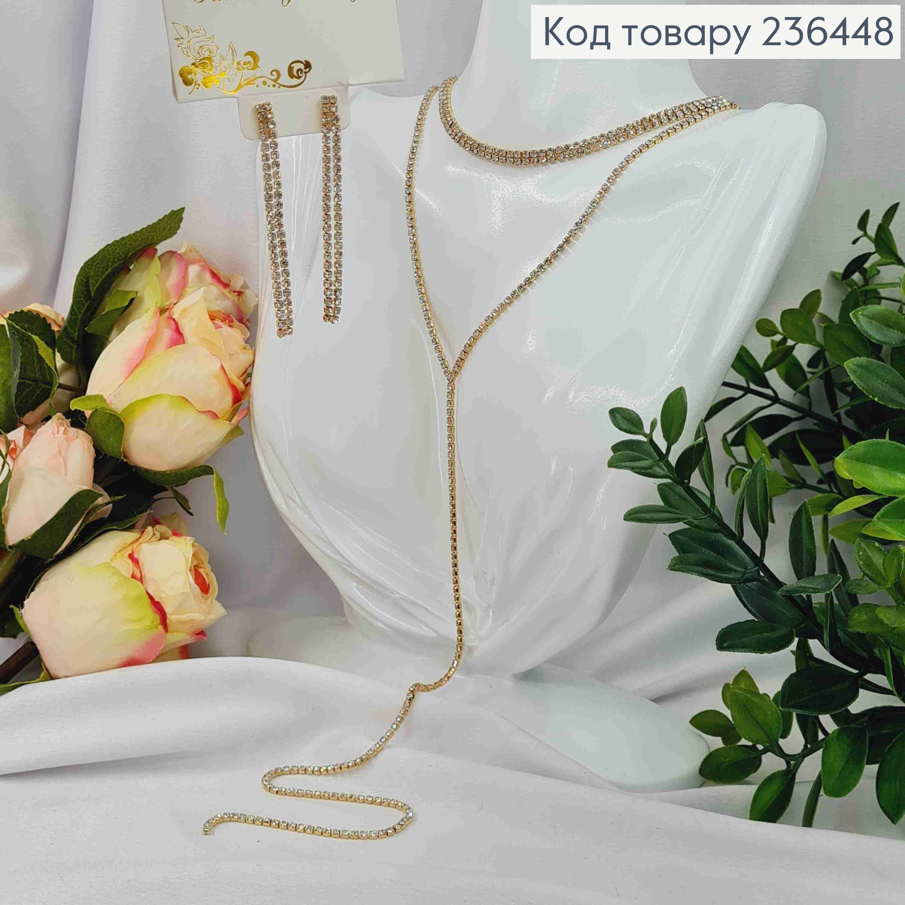 Набір(ЗОЛОТОГО кольору): Сережки гвоздики (6см), Подвійний ланцюжок з Камінців (43+9см*30см)